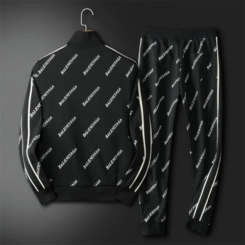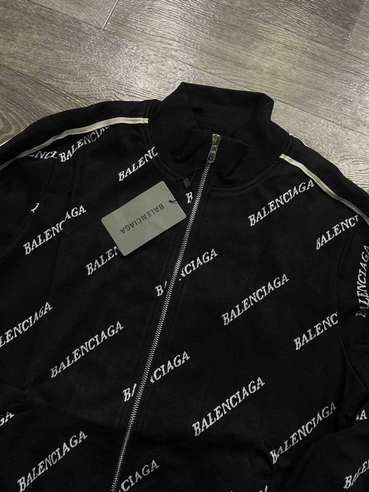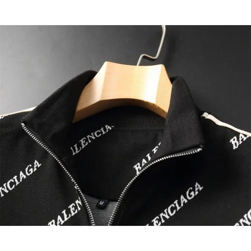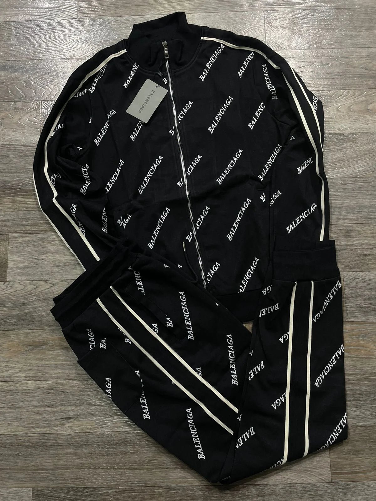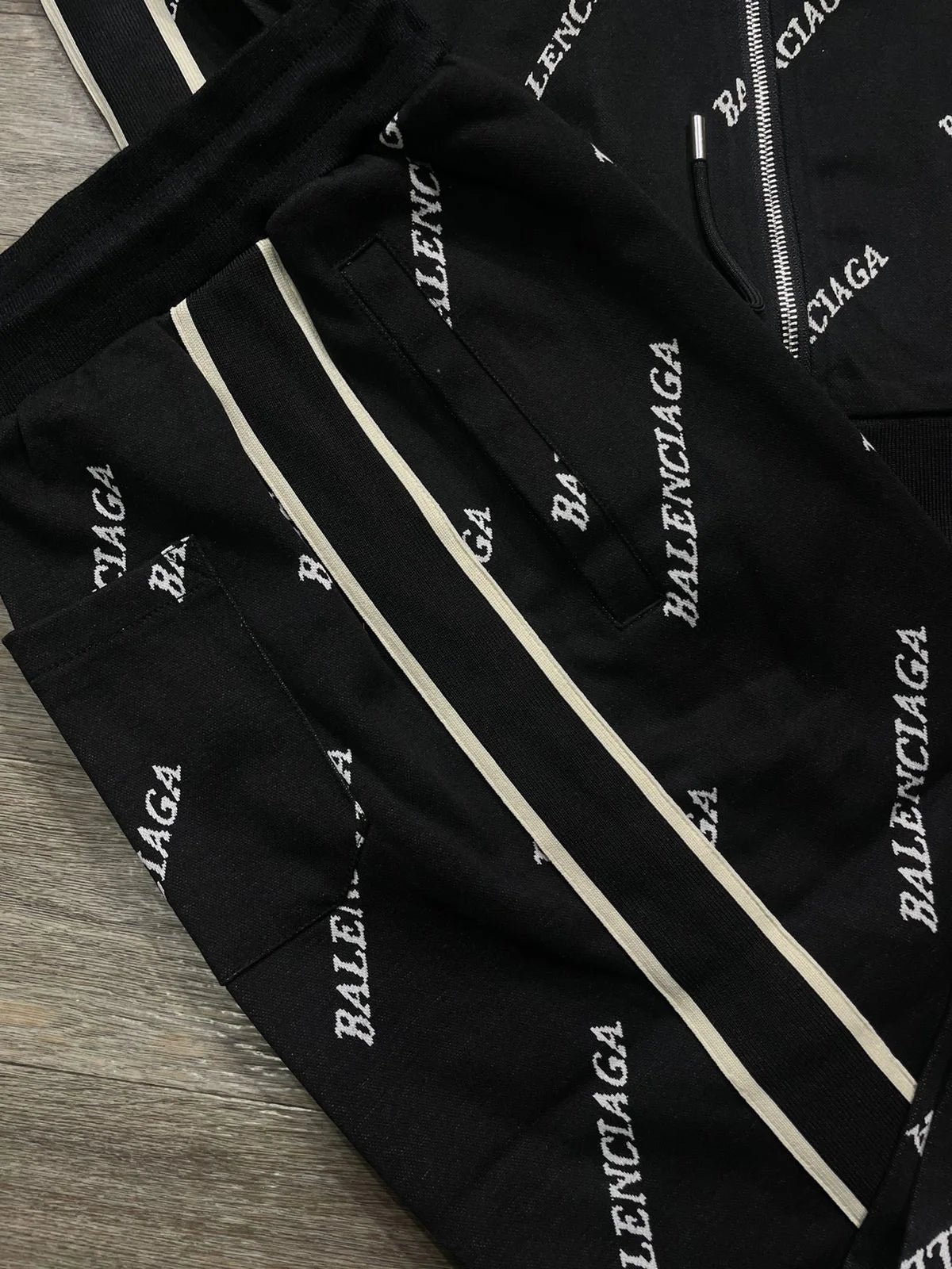 BALENCIAGA || Survêtement noir en maille intarsia avec logo intégral et fermeture éclair