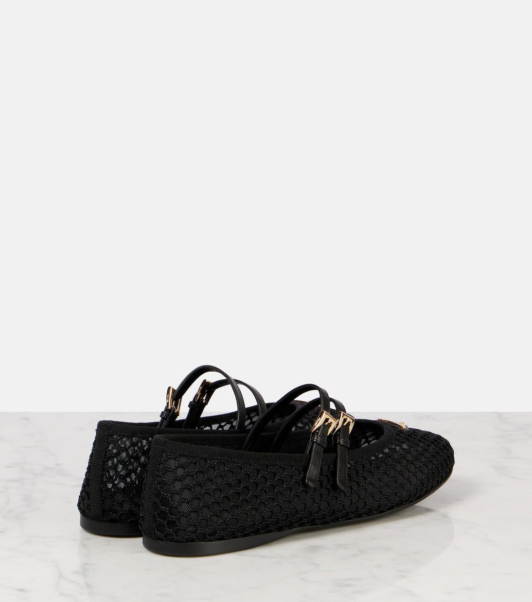 Prada revisite l’héritage italien dans une direction résolument moderne avec une approche épurée et avant-gardiste. Soigneusement confectionnées en résille, ces ballerines sont dotées de doubles brides rehaussées de boucles dorées. Raffinée et polyvalente, cette paire est complétée par les logos triangulaires immédiatement reconnaissables du label sur les empeignes.