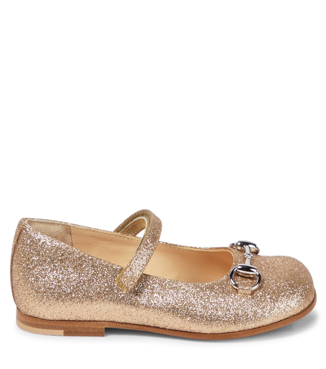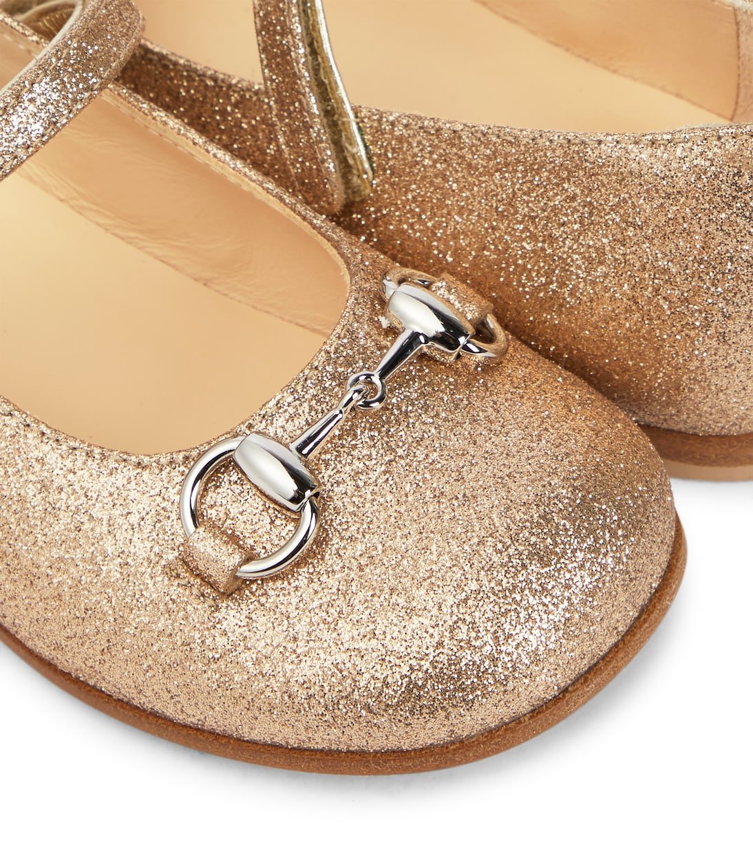 Les petites adeptes de mode se réjouiront de porter ces ballerines de Gucci Kids. Rehaussées de paillettes dorées et d’un mors métallique, elles sont dotées de brides pour un ajustement parfait.