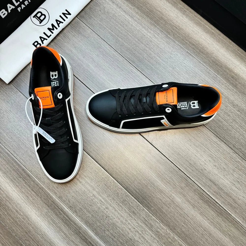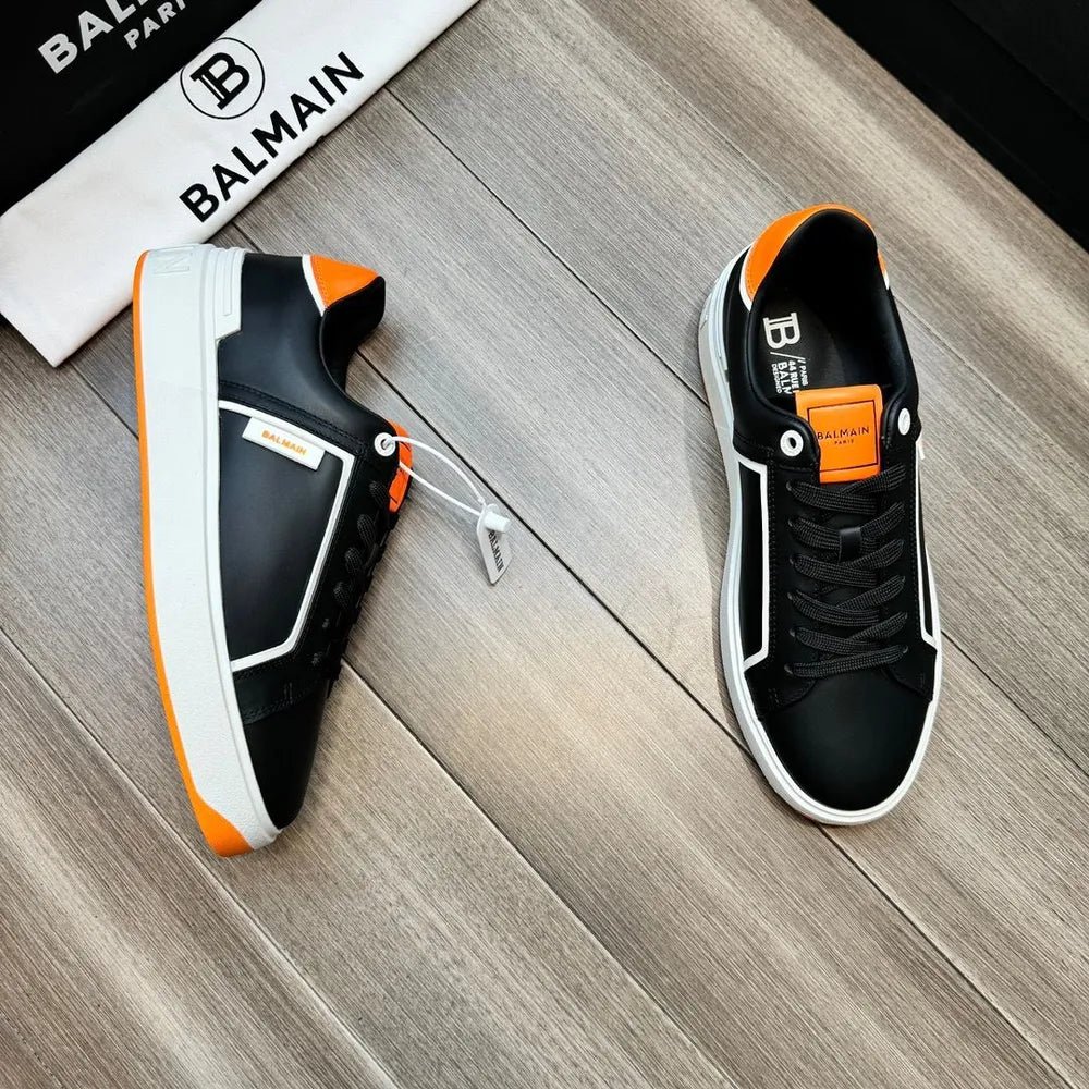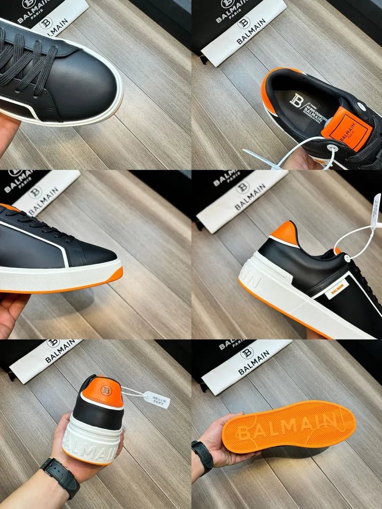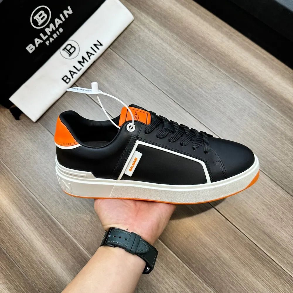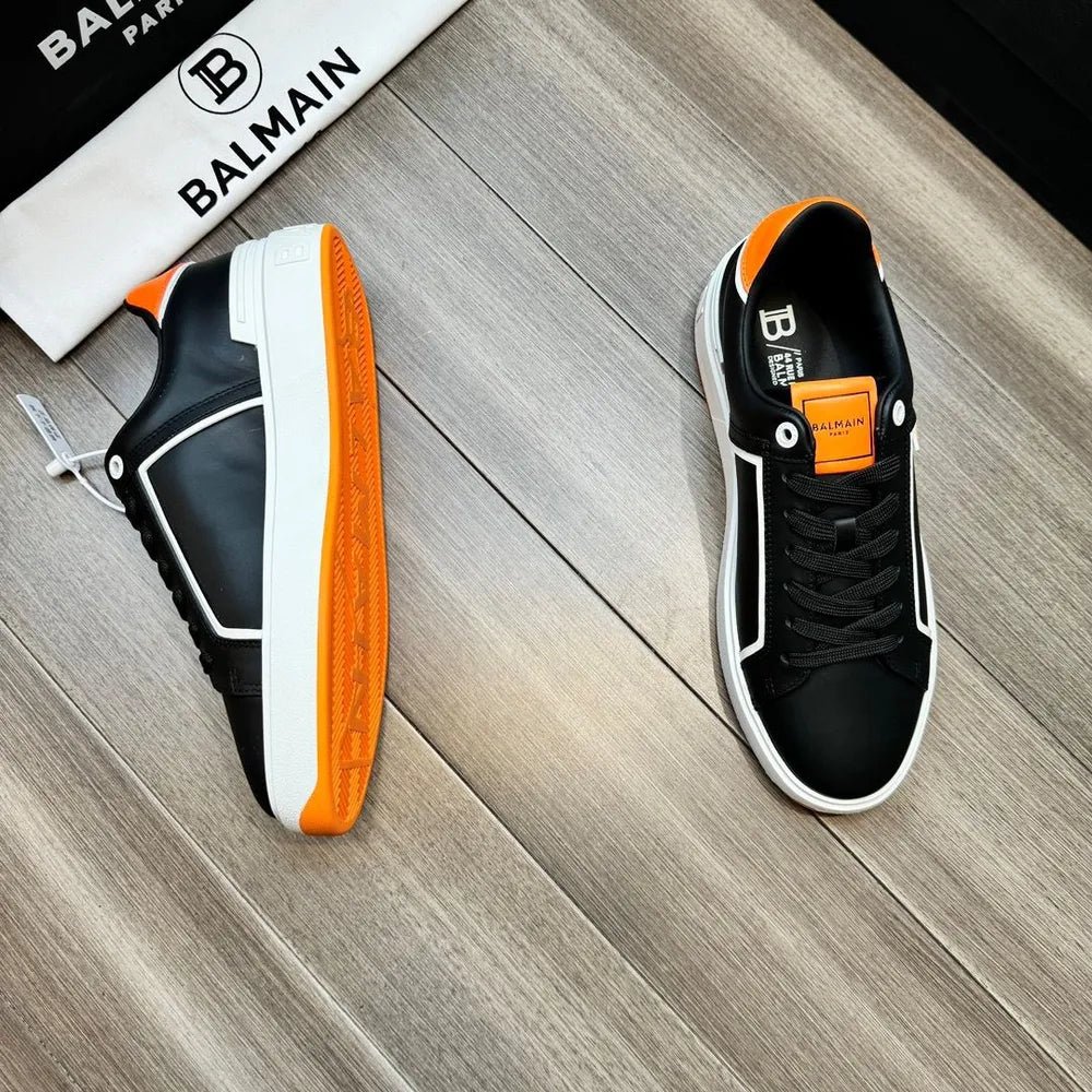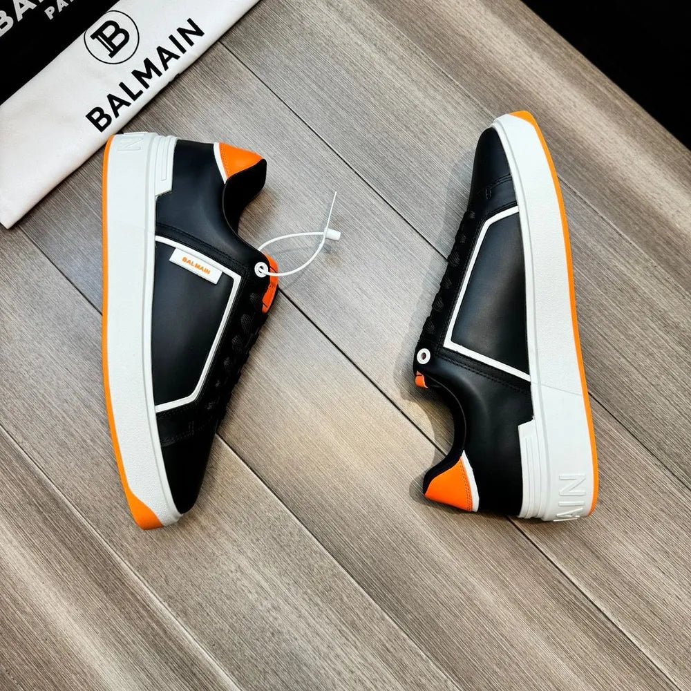 BALMAIN || Baskets basses blanches/orange « B-Court » à patch logo