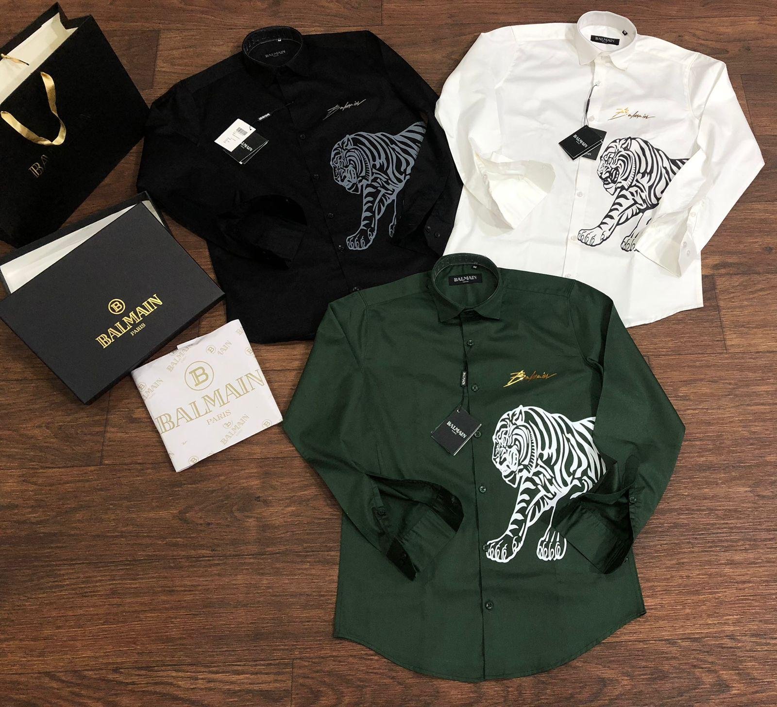 BALMAIN || Chemise à imprimé tigre et logo signature