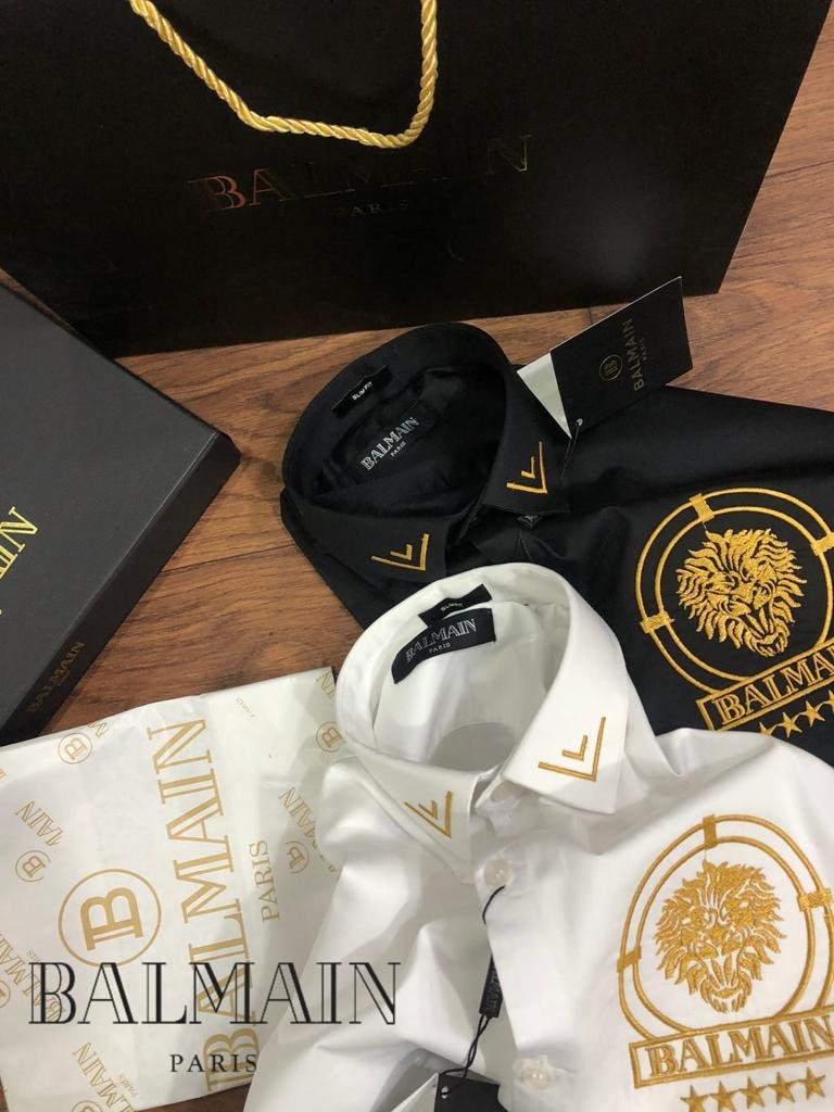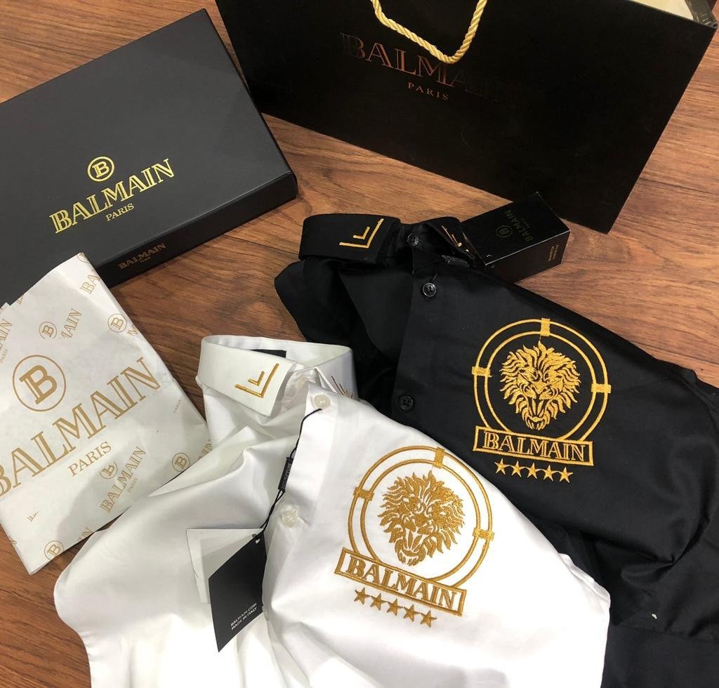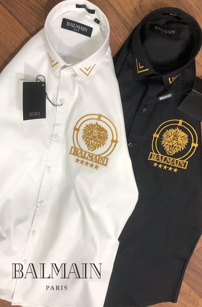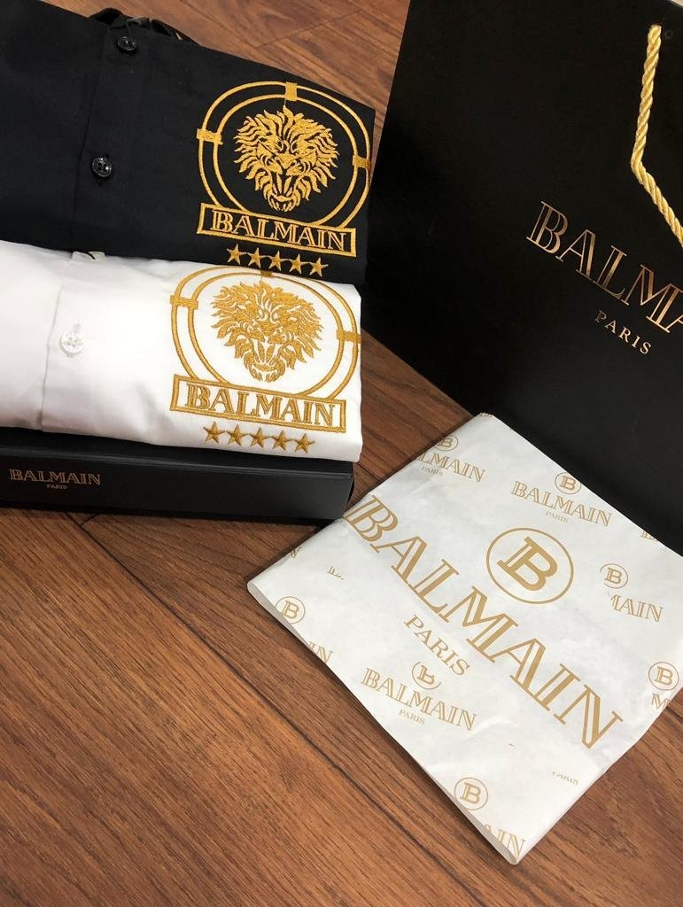 BALMAIN || Chemise de luxe à logo lion doré en relief