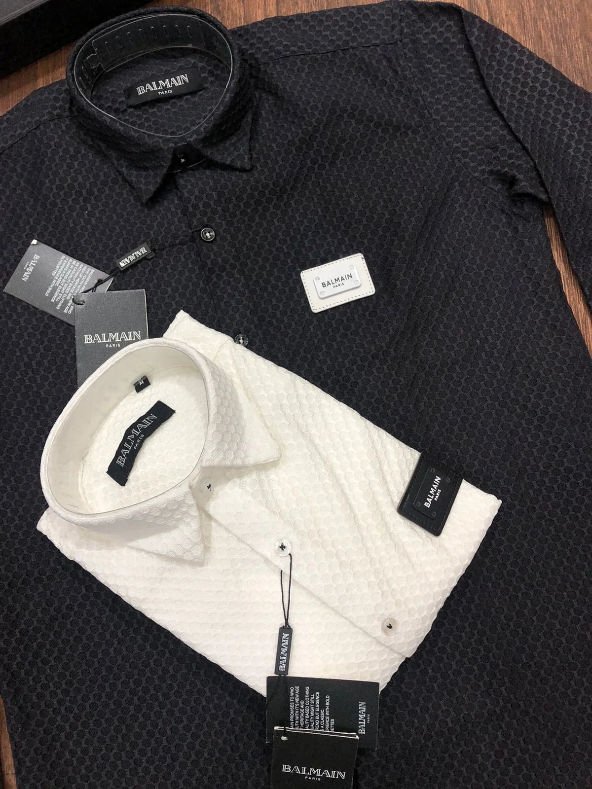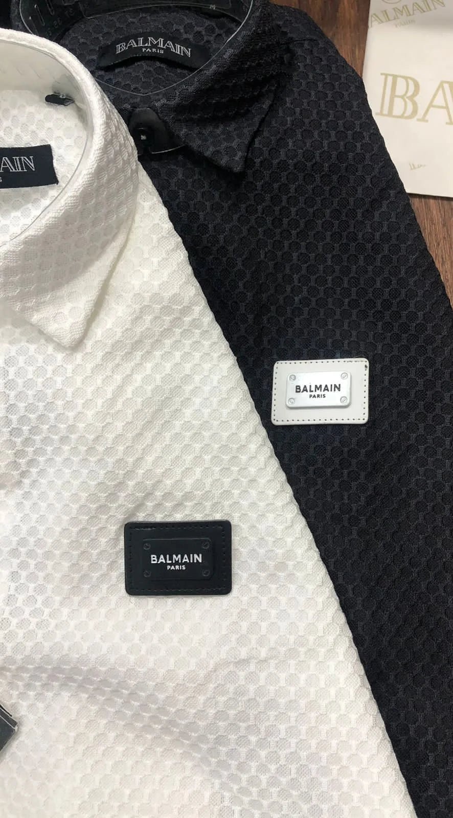 BALMAIN || Chemises en coton à logo Balmain Paris pour homme