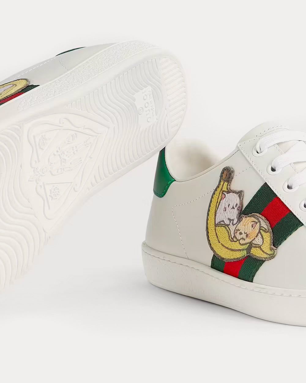 Bananya est présent dans la collection Ouverture, célébrant l’histoire ludique de la Maison, née il y a six ans. Rêvant de devenir une banane enrobée de chocolat tendance, ce chat fougueux est connu pour ses plaisanteries charmantes et ses aventures pleines d’amitié. Ici, l’image du chat est revisitée dans un patch brodé ornant la sneaker Ace.