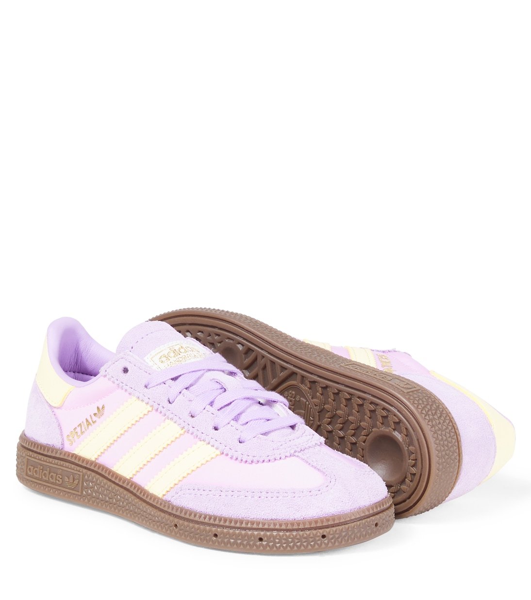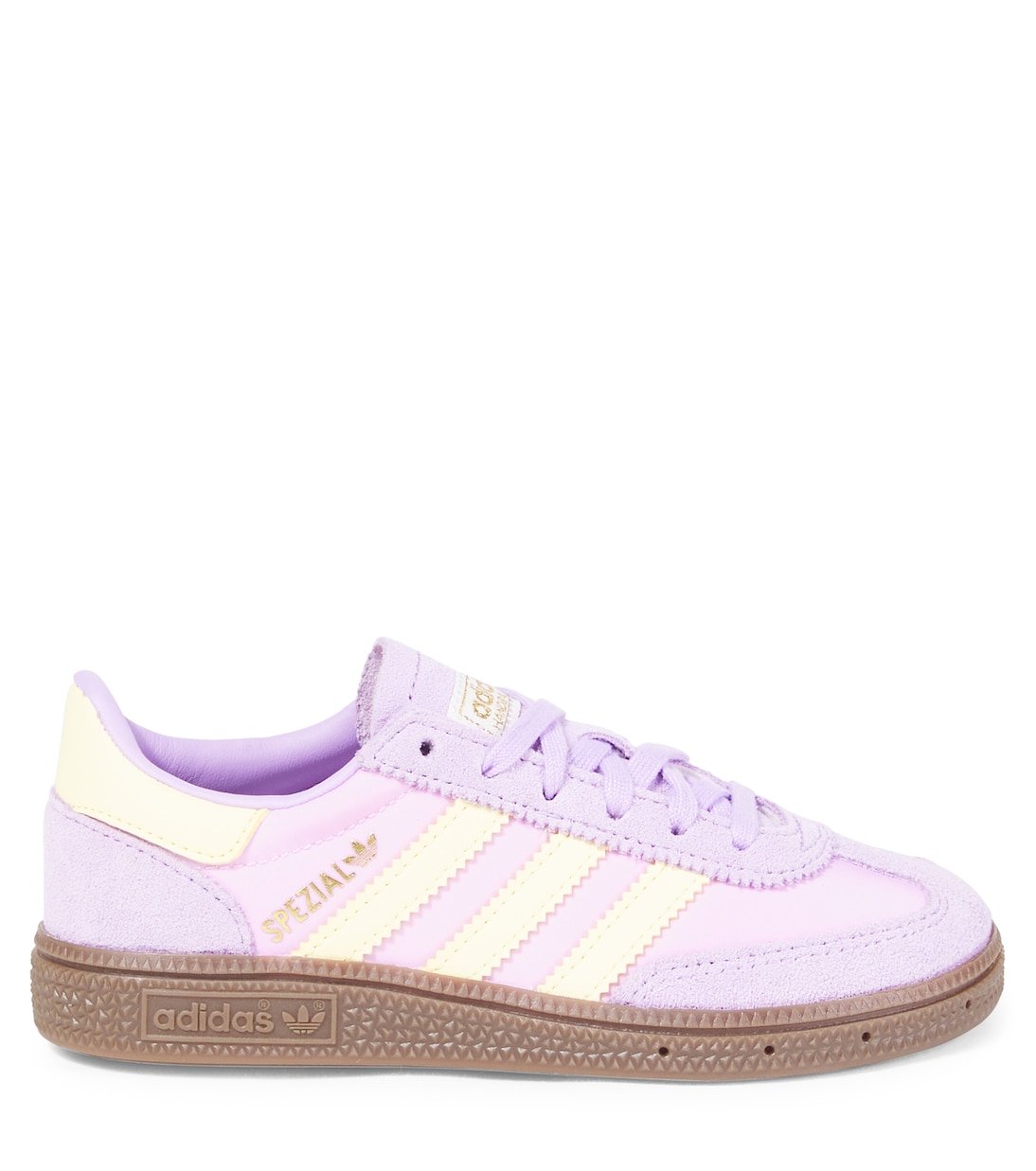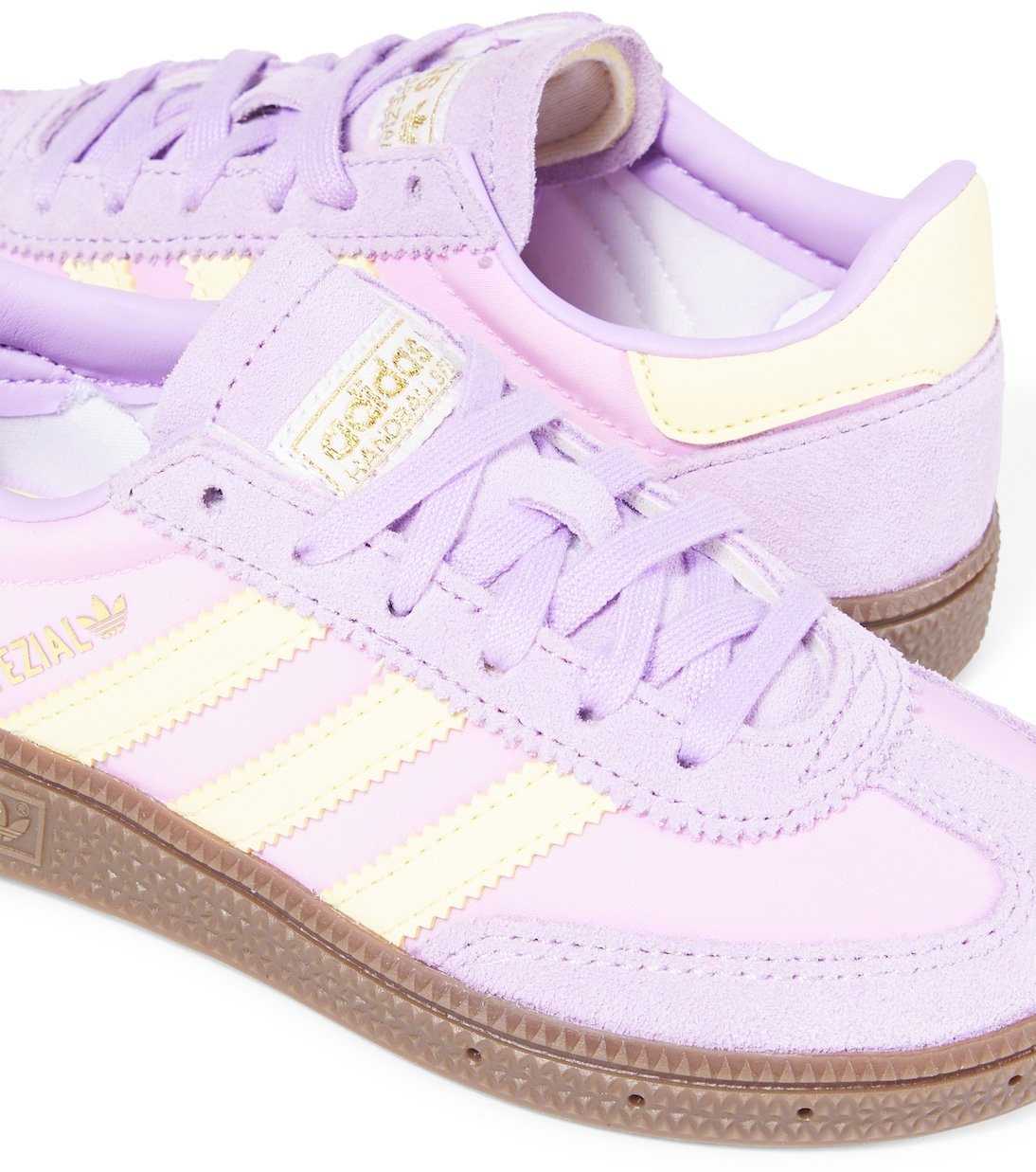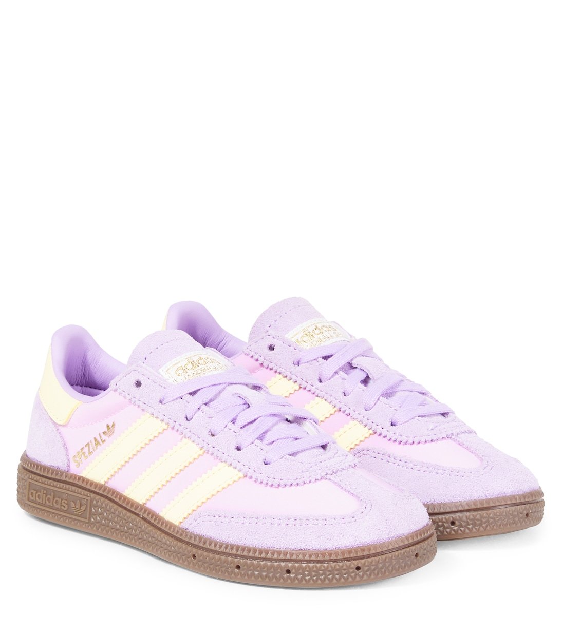 Confectionnées en daim souple, les baskets Handball Spezial d’Adidas Originals Kids présentent une silhouette emblématique dans un coloris violet et blanc ludique. Ce modèle est orné du logo et des 3 bandes emblématiques du label sur les côtés.