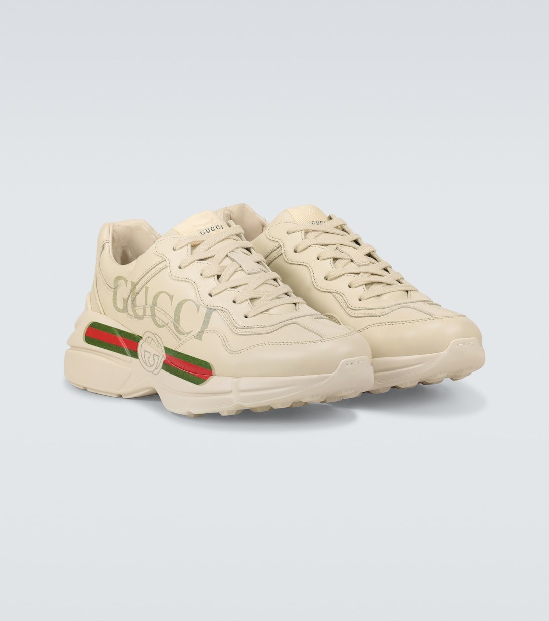 Dotées de semelles épaisses et d’une tige à empiècement de cuir, les baskets Rhyton de Gucci présentent une version du logo de la maison des années 80, imprimée sur les côtés.