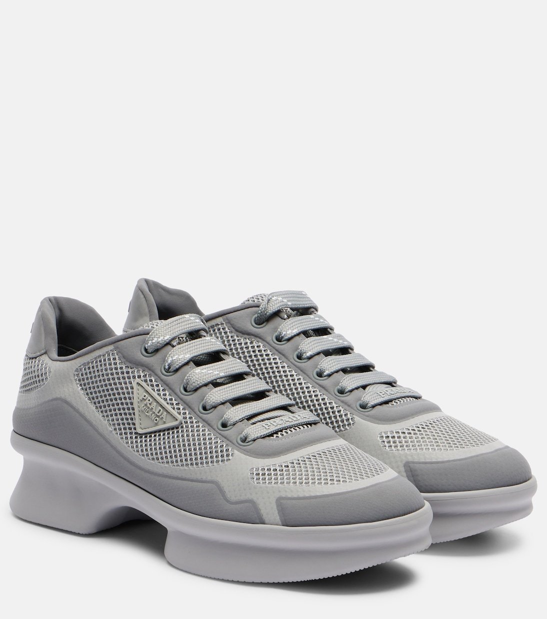 Proposant une version plus durable d’un tissu signature, les produits Re-Nylon de Prada sont fabriqués à partir de déchets plastiques régénérés provenant de l’océan. Les baskets Wavy sont réalisées à partir du matériau emblématique et reposent sur des semelles à plateforme.