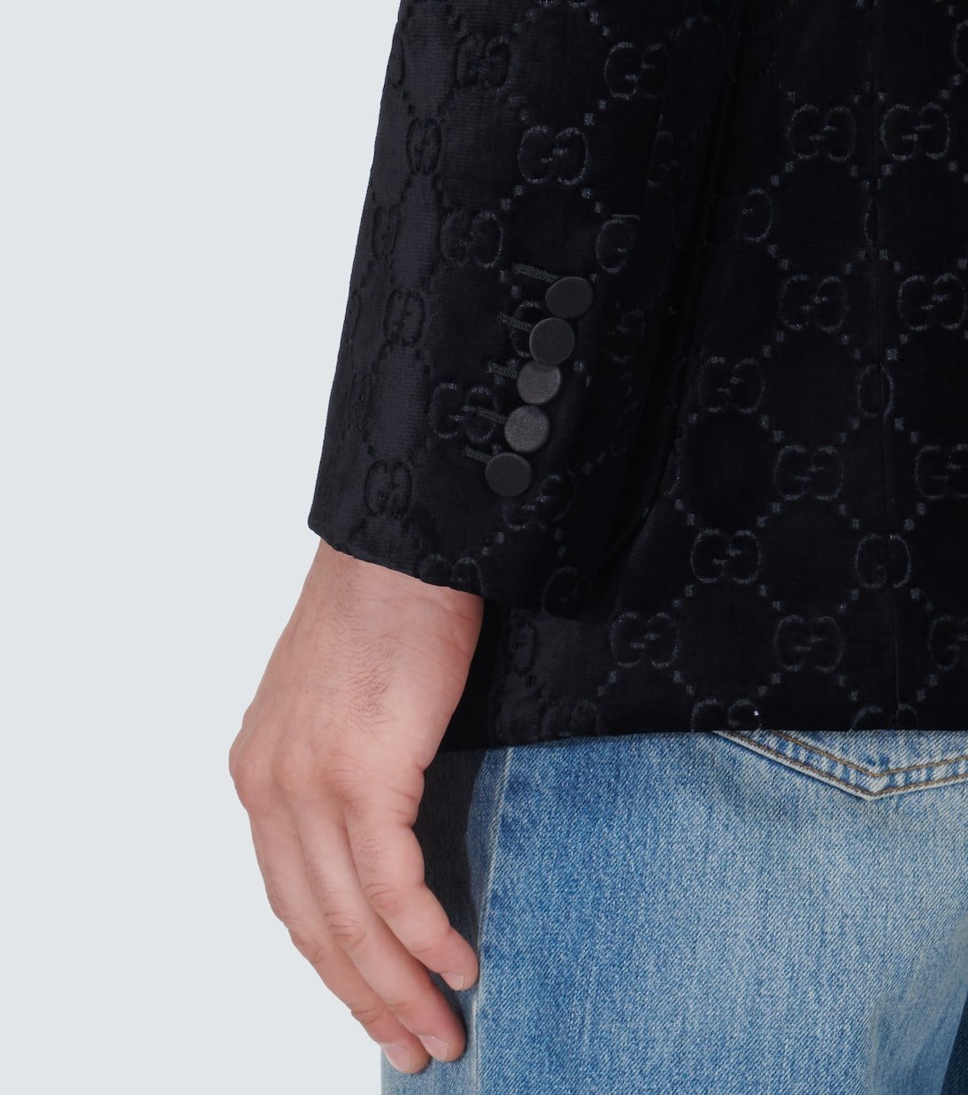 Réalisé en velours de coton mélangé, ce blazer à simple boutonnage signé Gucci présente une silhouette minimaliste entièrement doublée. Ce modèle est rehaussé de poches latérales et orné de l’iconique monogramme GG.