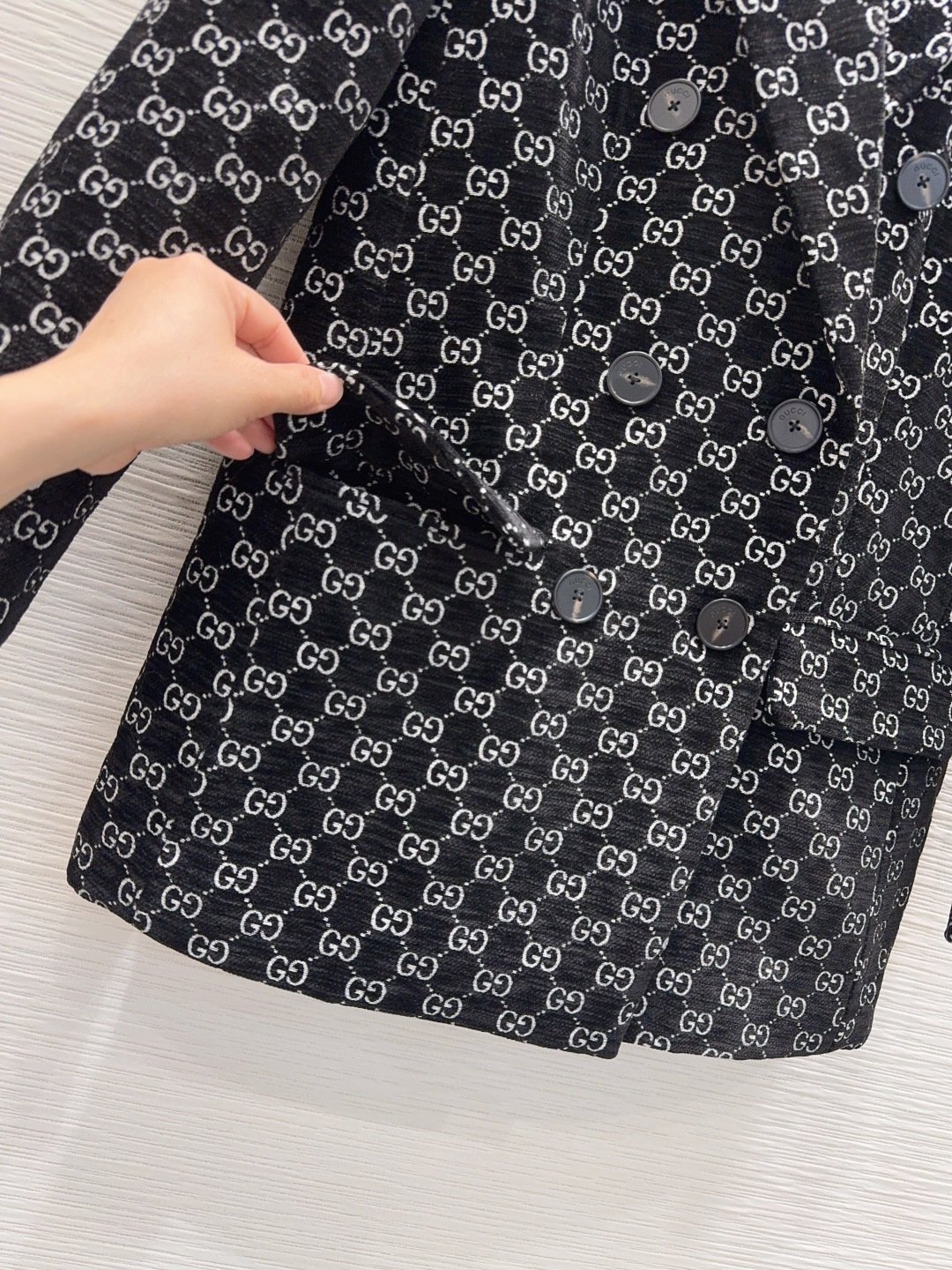 - Finition de qualité : Couture soignée, boutons en métal gravés Gucci, détails raffinés.