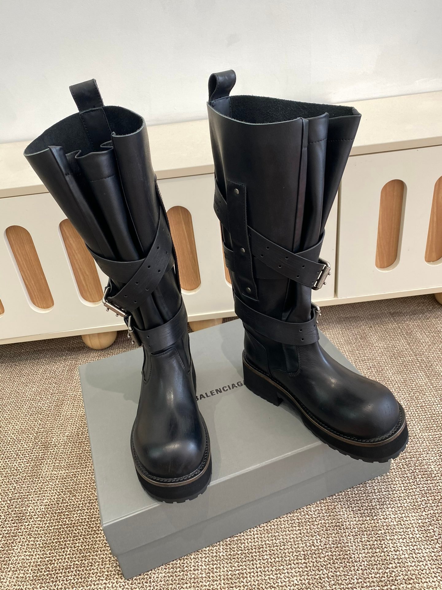 Découvrez l’élégance audacieuse avec les bottes Balenciaga Stomper en cuir noir, un choix parfait pour ceux qui recherchent un style contemporain et sophistiqué. Conçues pour offrir un look affirmé tout en garantissant confort et durabilité, ces bottes incarnent le savoir-faire exceptionnel de la marque.