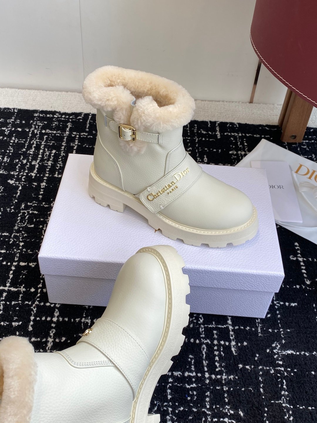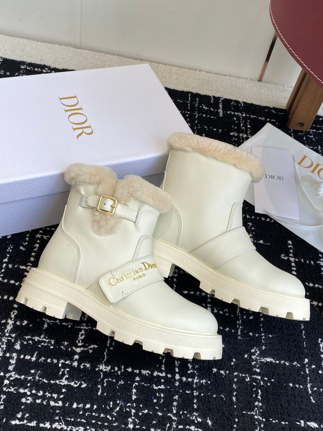 Fabriquées avec des matériaux haut de gamme, ces bottes nécessitent un nettoyage doux et une protection contre l’humidité pour préserver leur éclat. Parfaites pour une utilisation quotidienne ou lors d’événements spéciaux, elles incarnent le luxe discret et la qualité artisanale Dior.