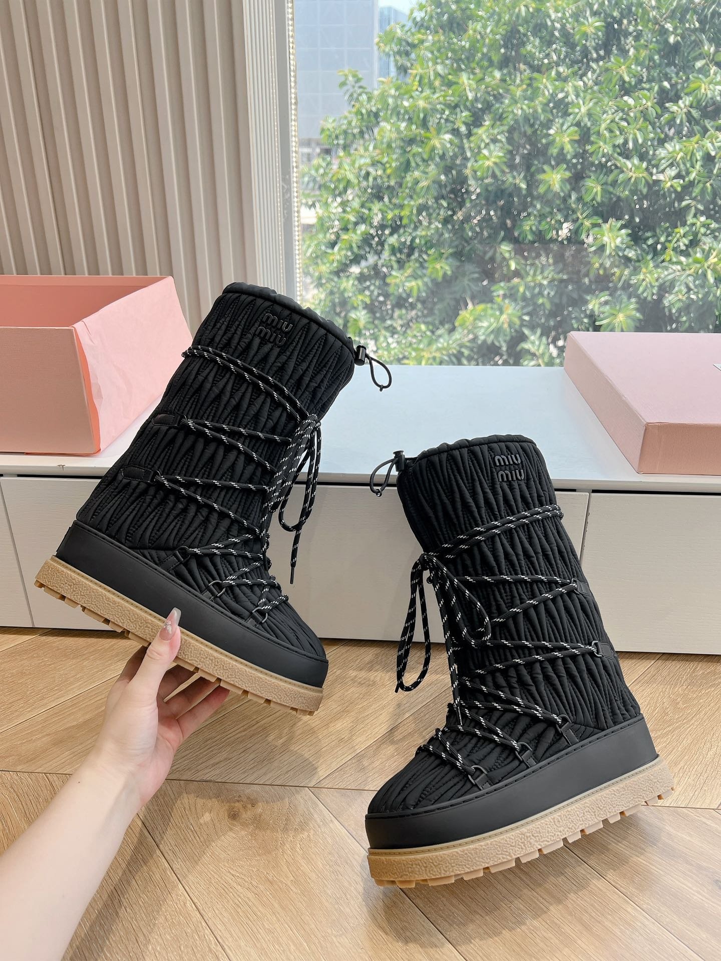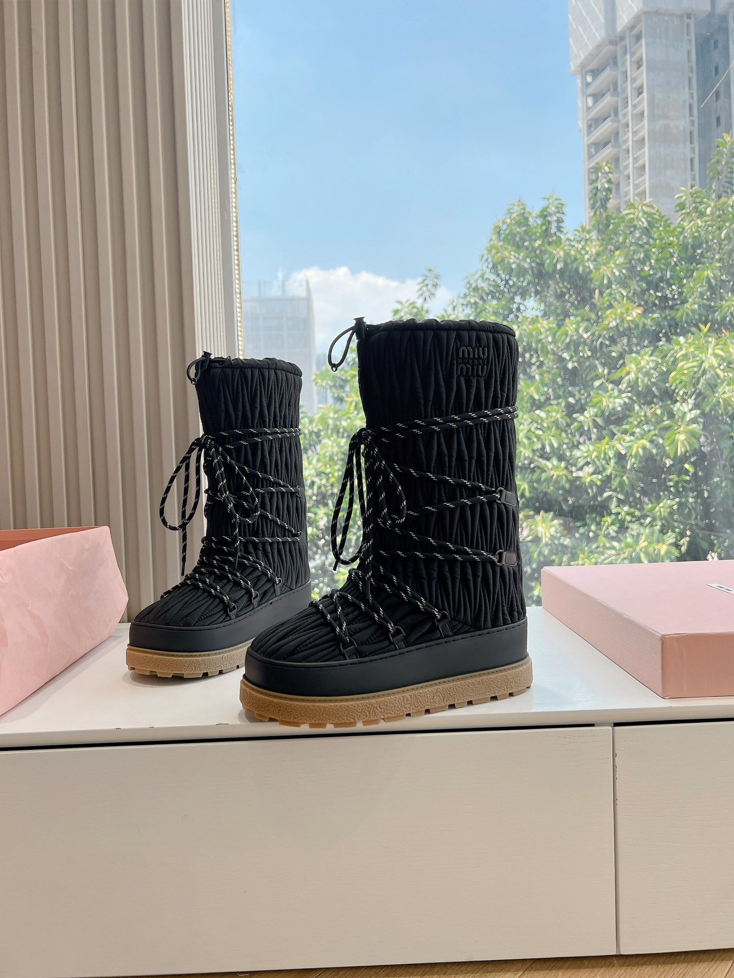 Découvrez les bottes de neige Miu Miu, l’alliance parfaite entre élégance et fonctionnalité pour affronter l’hiver avec style. Conçues pour allier confort et sophistication, ces bottes vous assurent une protection optimale contre le froid et l’humidité tout en restant tendance.