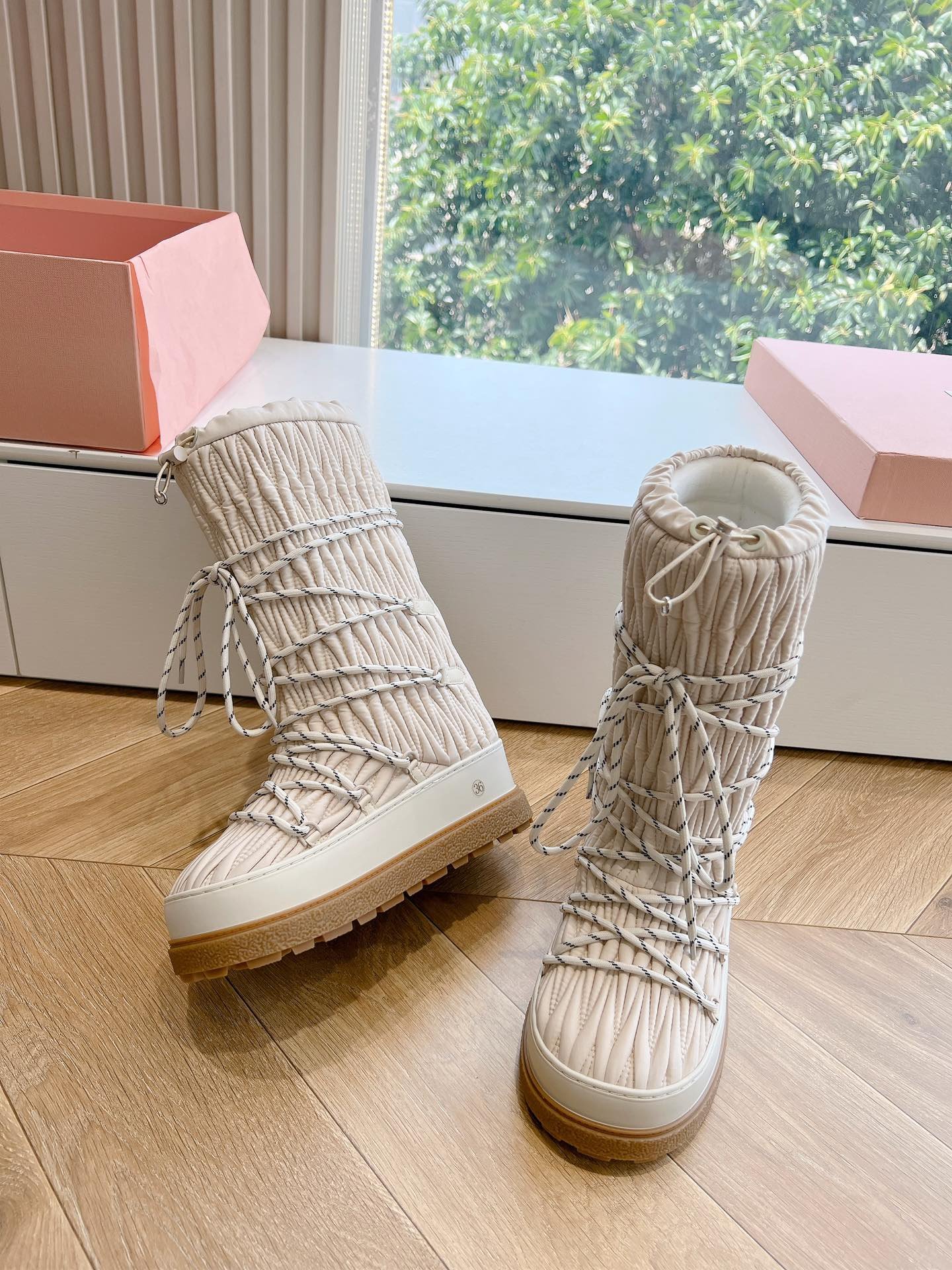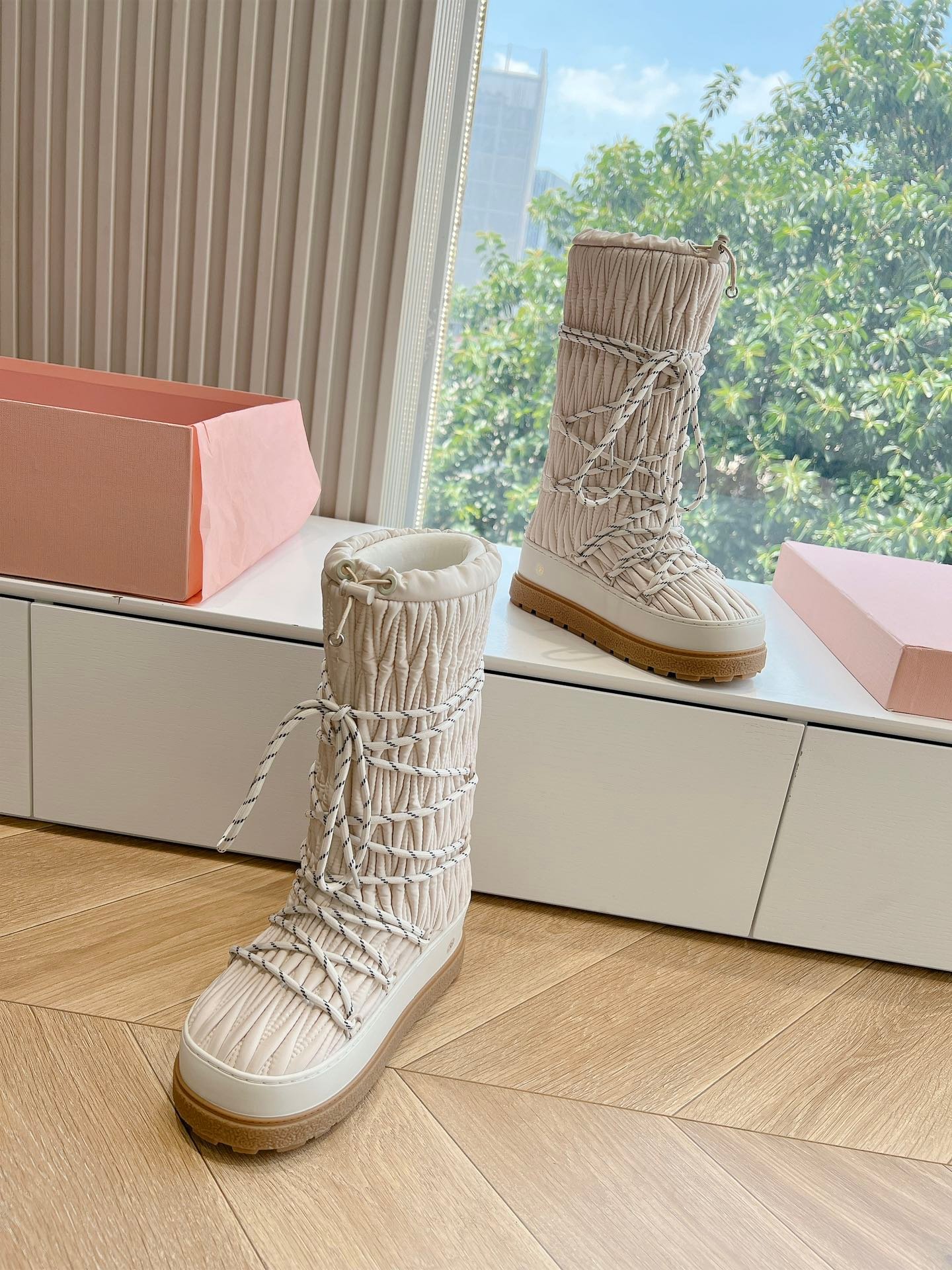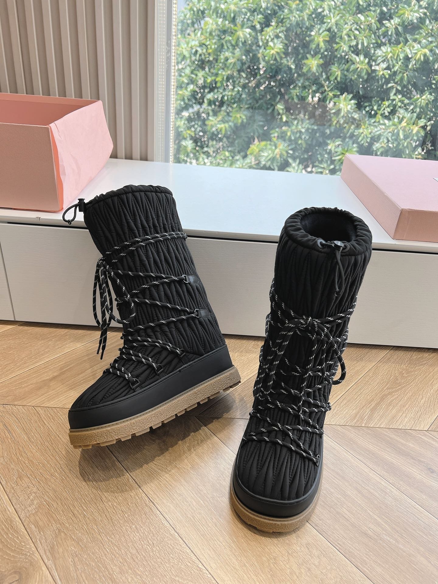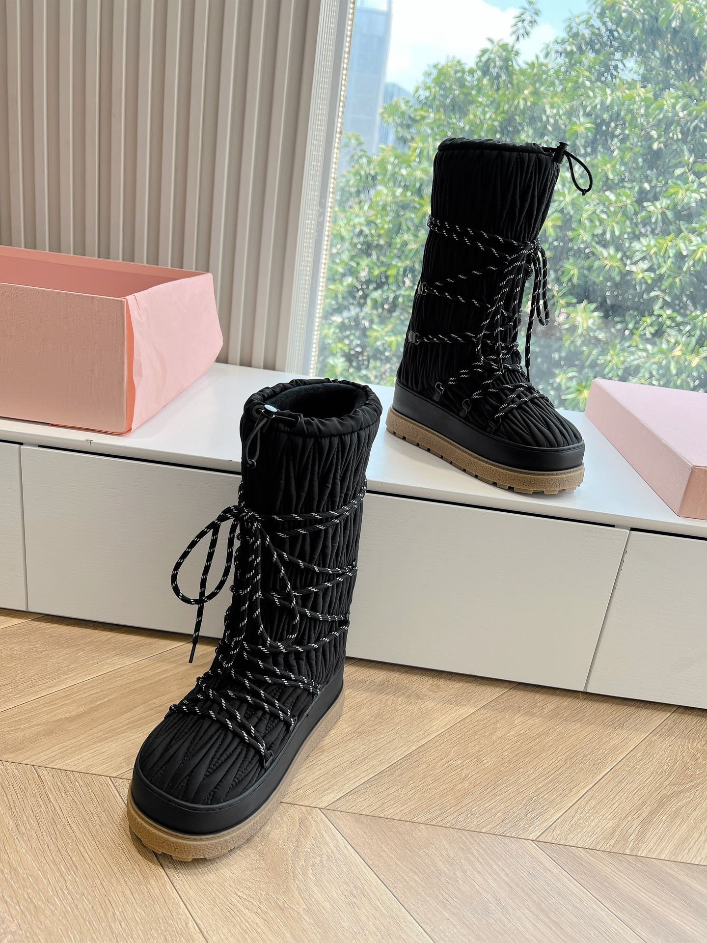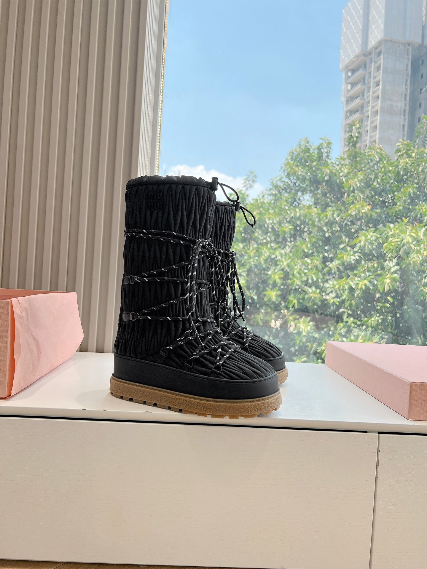 Adoptez les bottes de neige Miu Miu pour conjuguer élégance et praticité tout l’hiver. Leur design sophistiqué et leur performance technique en font un choix incontournable pour une mode hivernale raffinée.