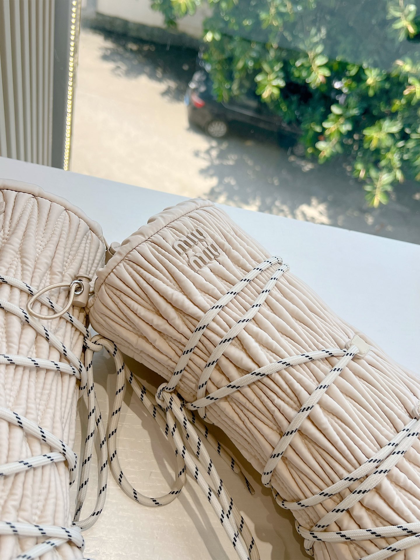 - Design contemporain avec une finition raffinée, emblématique de la marque Miu Miu