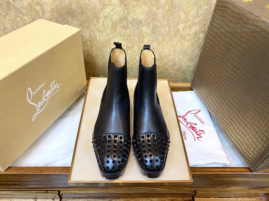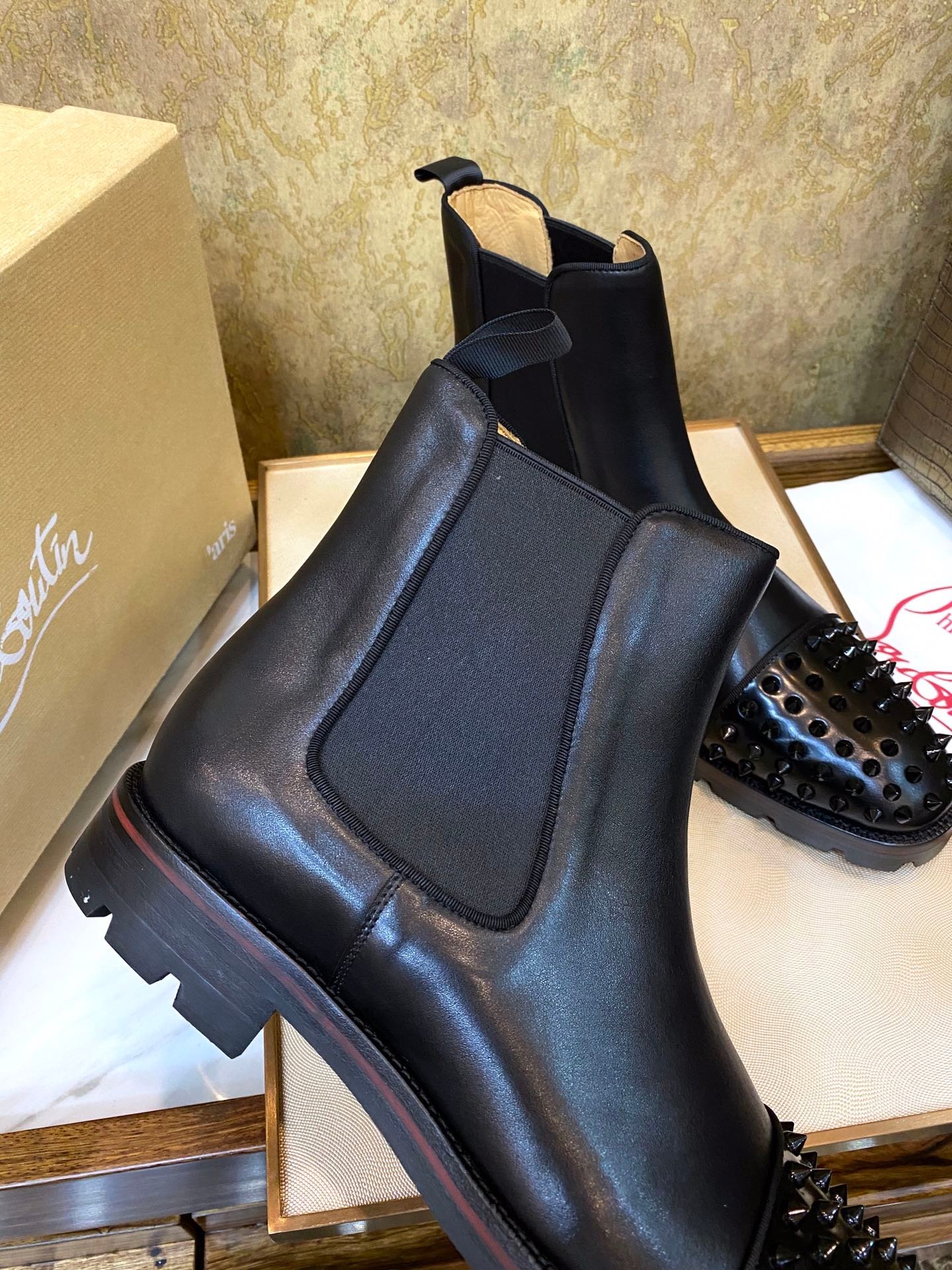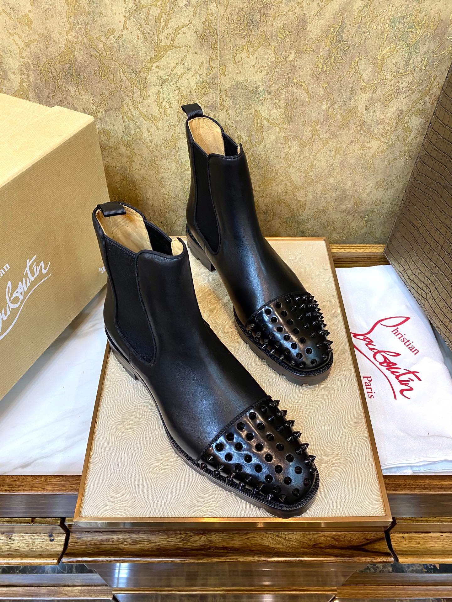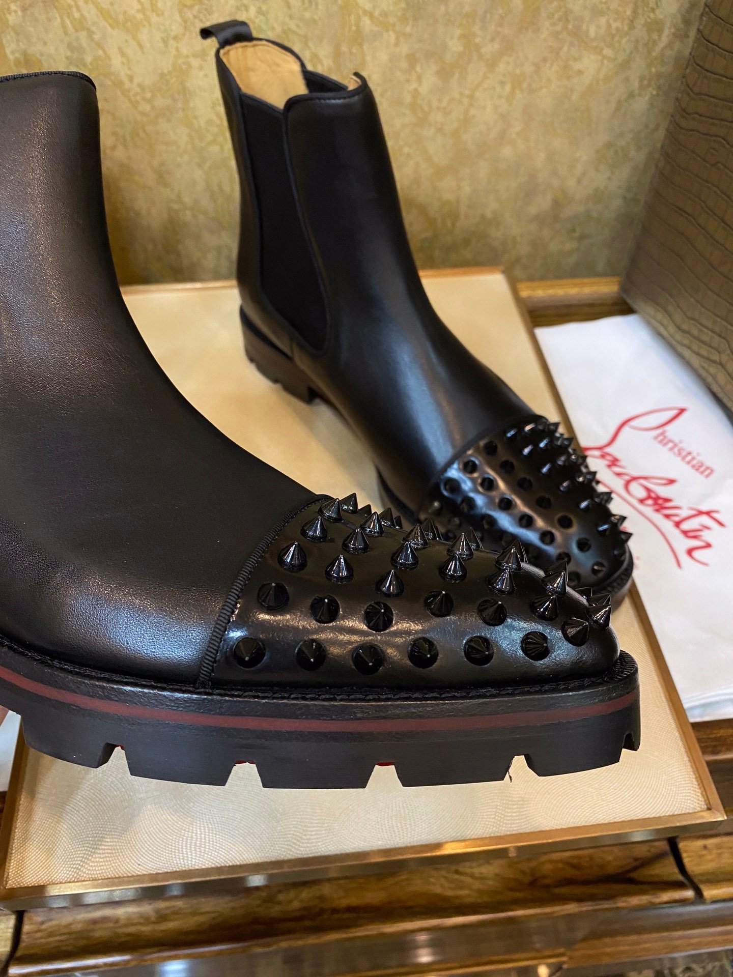 Bottines Louboutin en taille 37 à 45, alliant élégance classique et confort optimal. Design régulier avec finition raffinée, parfaites pour un style sophistiqué. Ajoutez une touche de luxe à votre garde-robe.