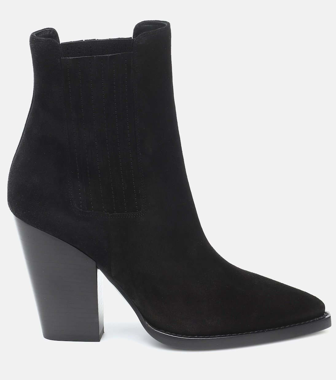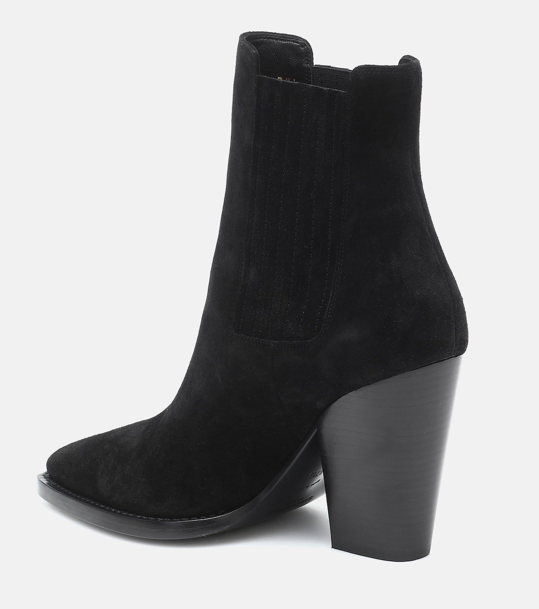 Les bottines Theo de Saint Laurent ont été réalisées en daim velouté noir et sont montées sur d’épais talons bottiers incurvés de 95 mm. Faciles à enfiler grâce à leur tirette placées à l’arrière, elles présentent un élégant bout pointu pour un style affirmé. Portez-les notamment avec vos jeans raccourcis, le week-end.