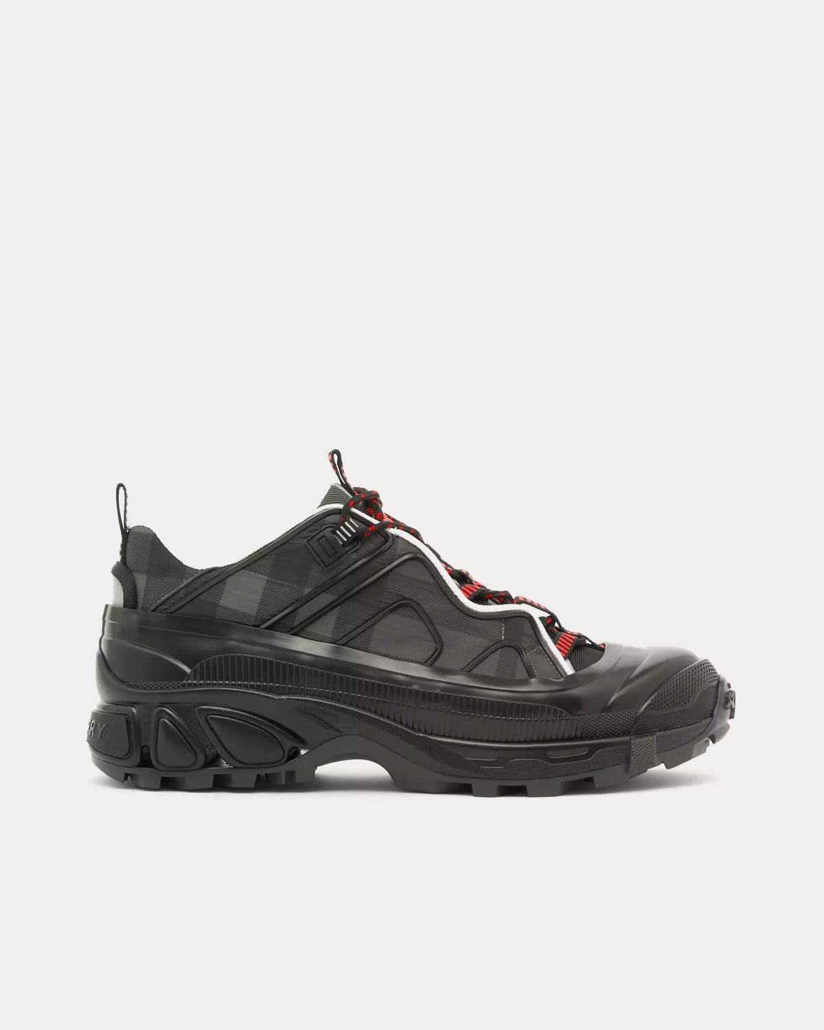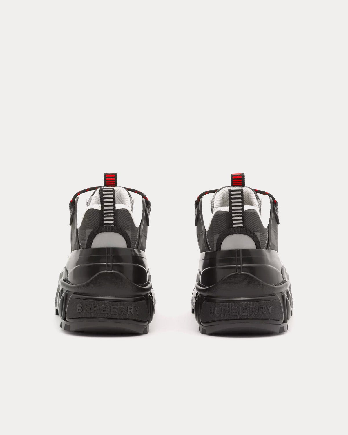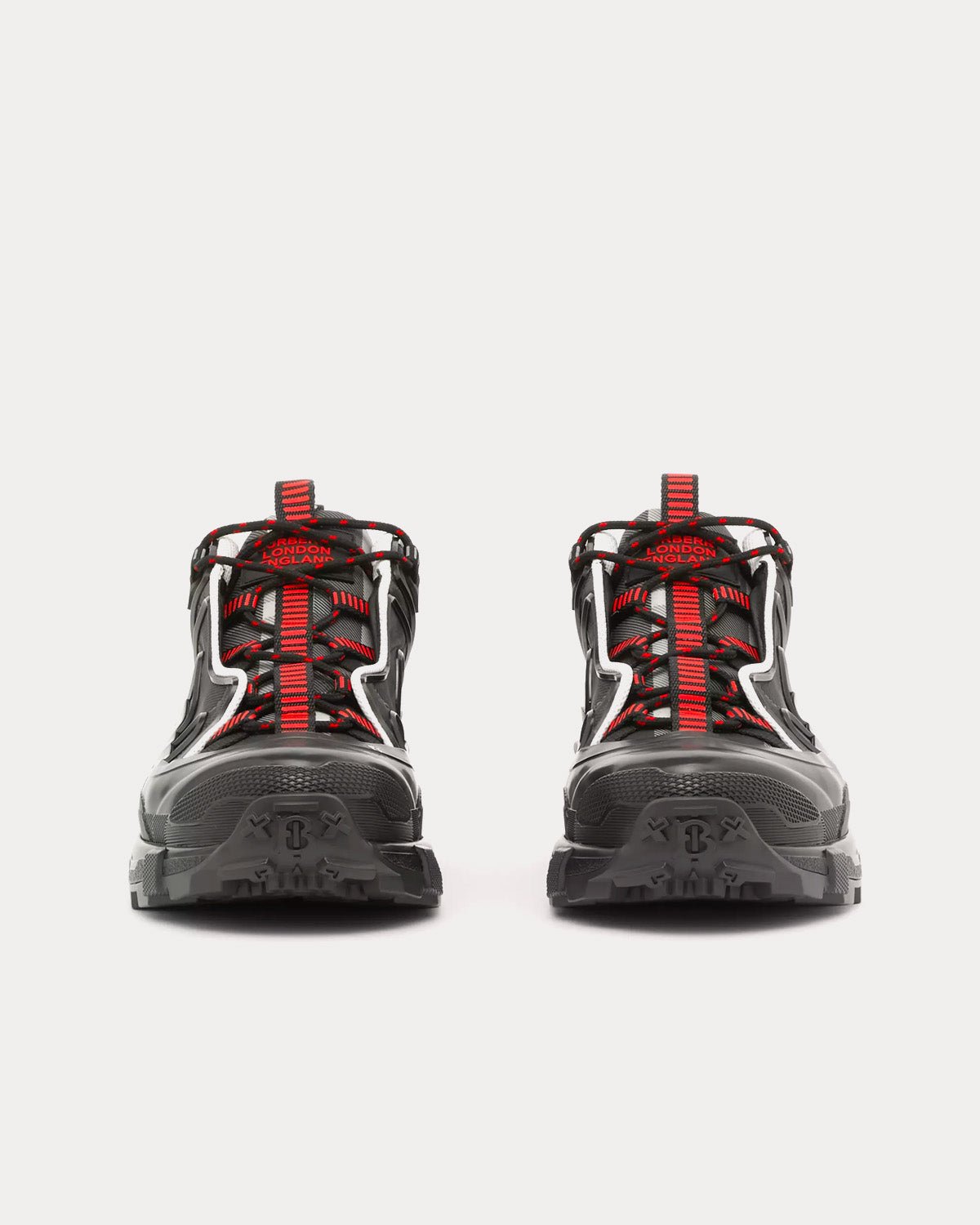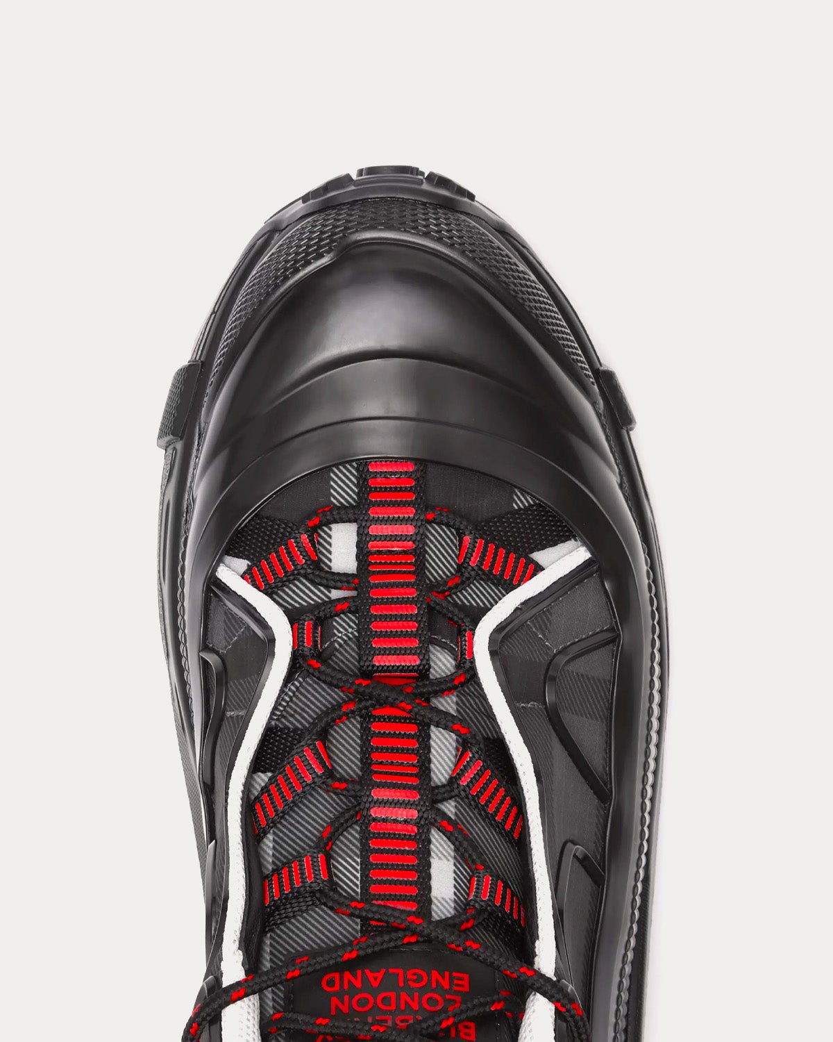 Baskets Burberry de défilé à carreaux emblématiques, rehaussées d’une bande de nylon contrastante au niveau des lacets. Elles sont ornées d’un surchaussure brillant inspiré des bottes de pluie et d’une semelle à détails croisés faisant référence à notre motif à carreaux emblématique. La matière principale de ce produit est composée d’au moins 70 % de matières recyclées.