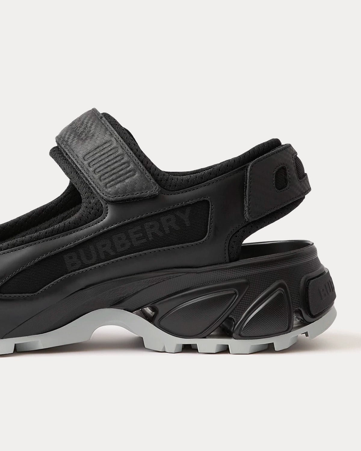 Sandales noires en cuir et nylon à imprimé logo Burberry Arthur
