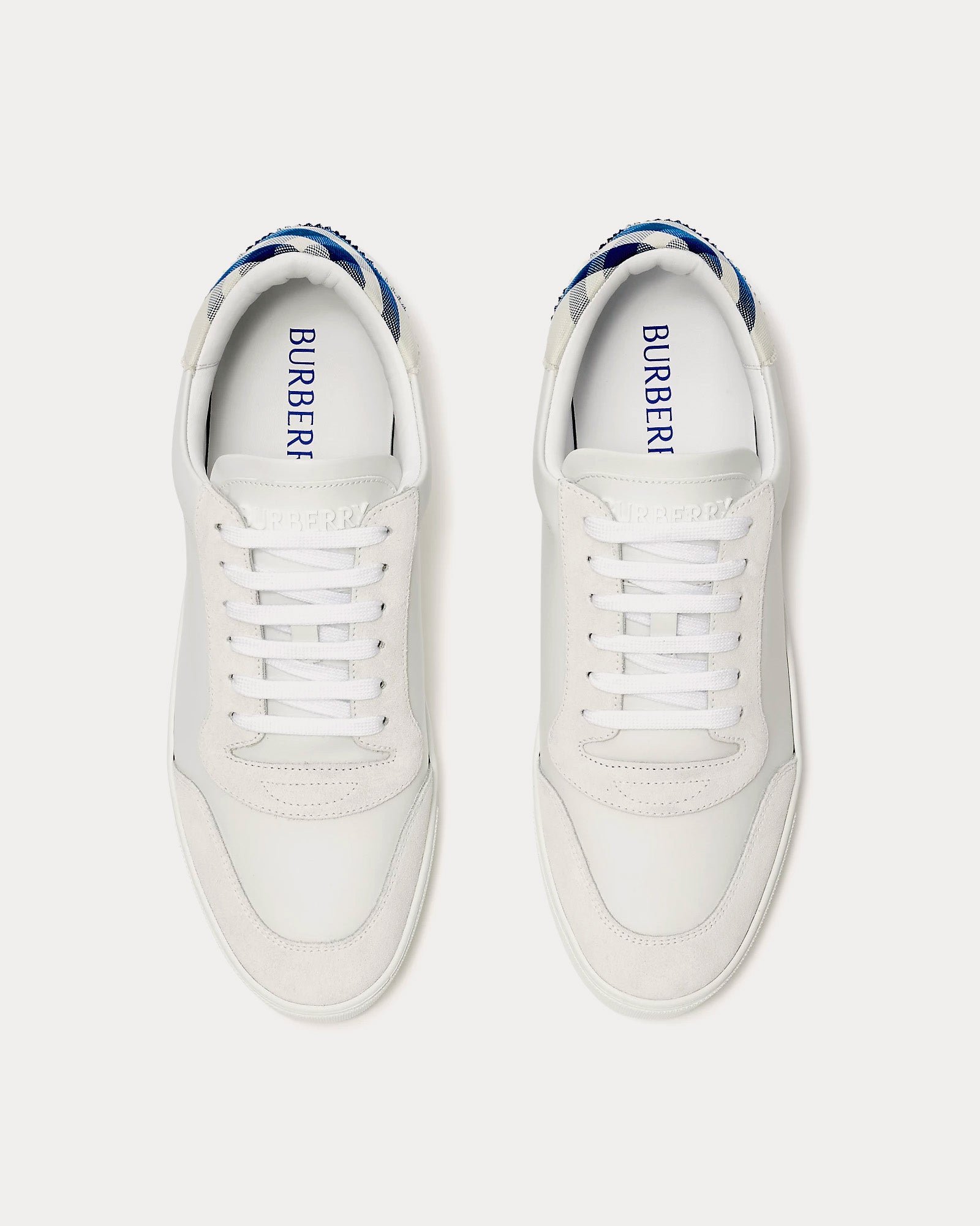 Baskets basses Burberry en cuir et coton à carreaux blanc optique/bleu
