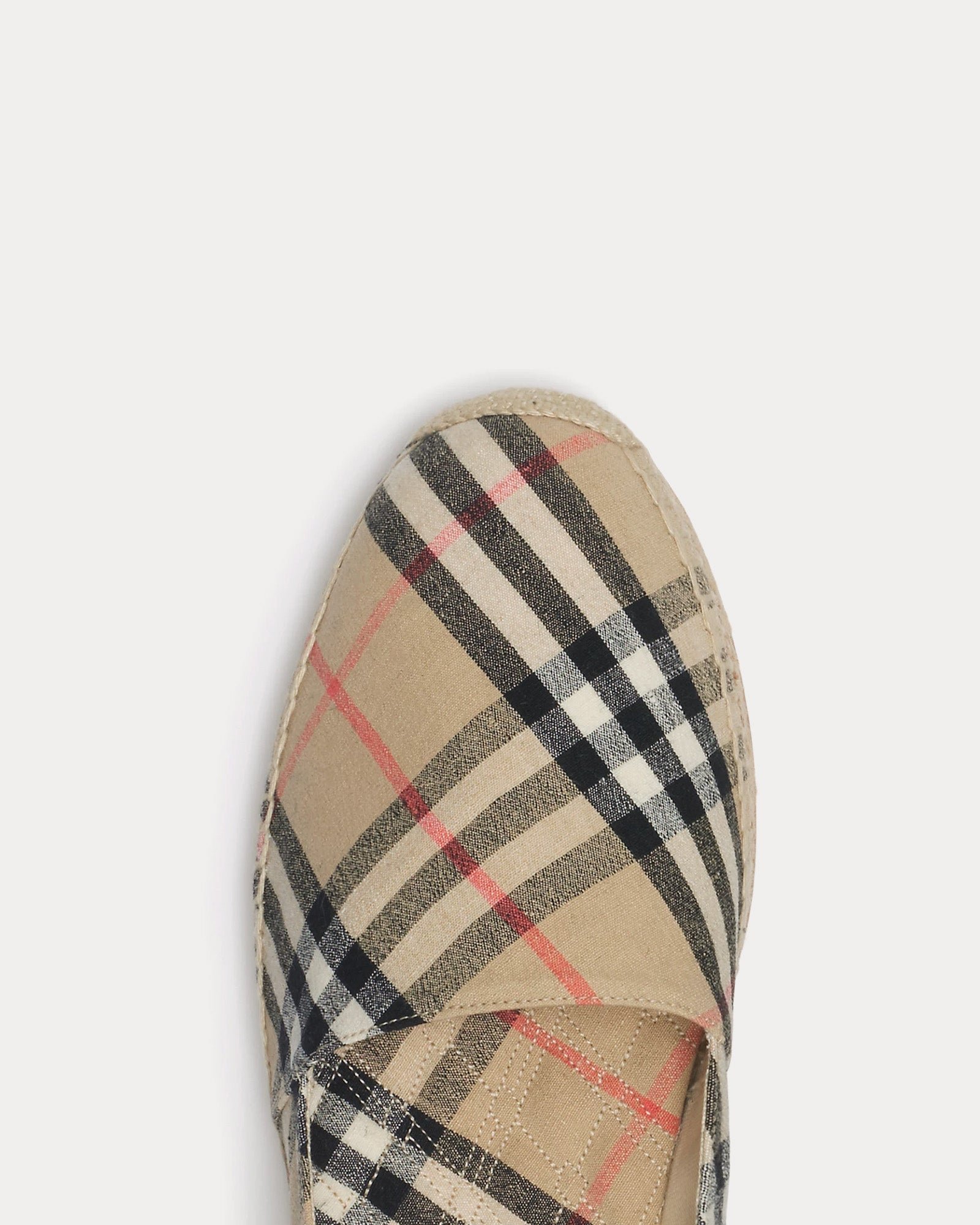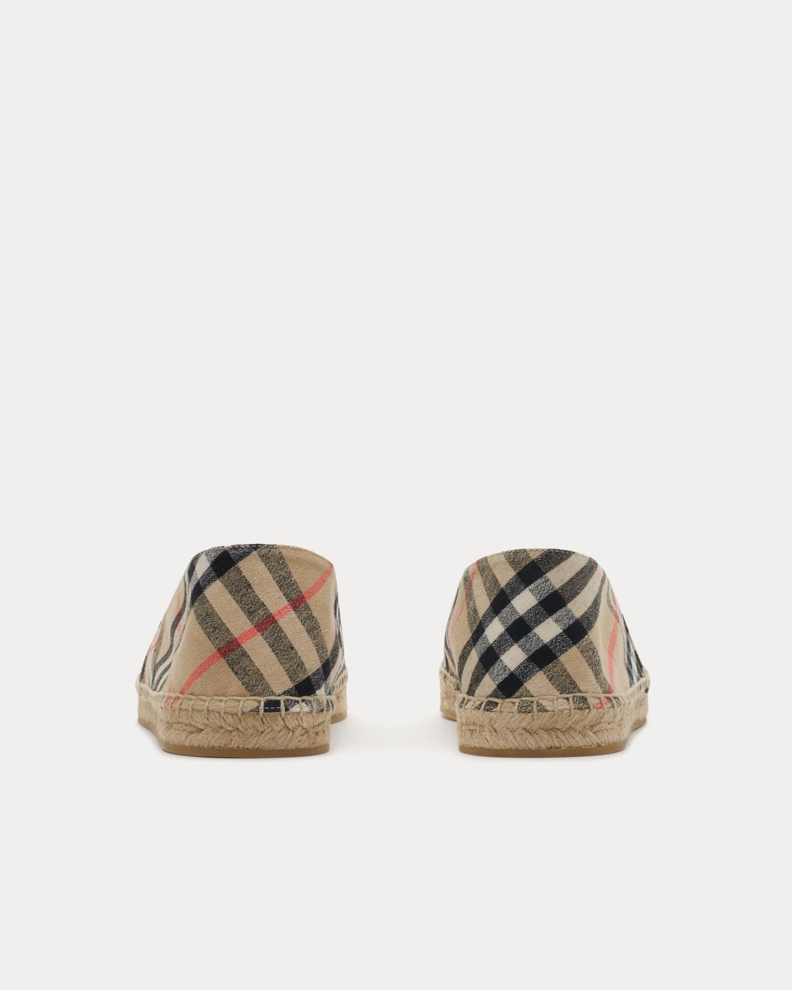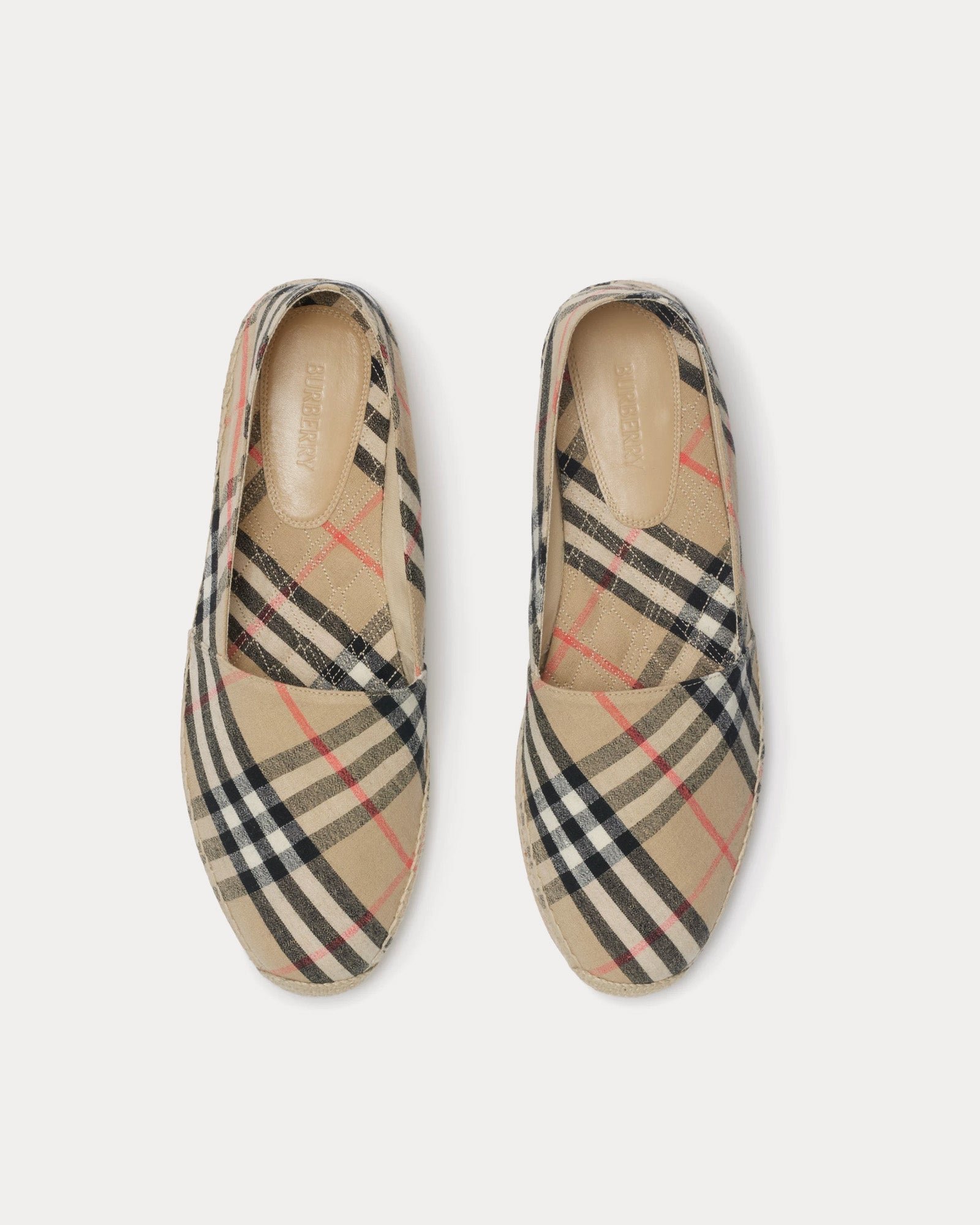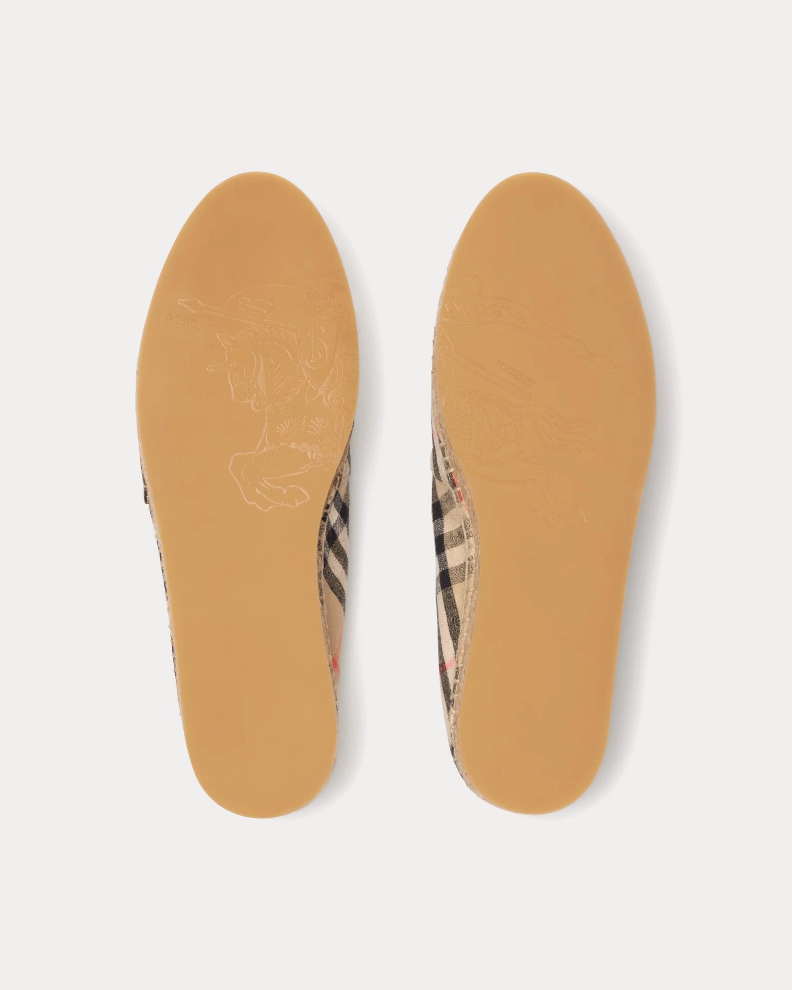 Elles présentent un bout en amande pour une silhouette raffinée, tandis que la semelle légère en caoutchouc assure une grande liberté de mouvement et une grande facilité de port tout au long de la journée. La semelle est ornée du motif emblématique du chevalier équestre, ajoutant une touche subtile et audacieuse à l’identité Burberry. Idéales pour un style estival décontracté, ces espadrilles offrent une élégance naturelle ancrée dans le savoir-faire britannique classique.