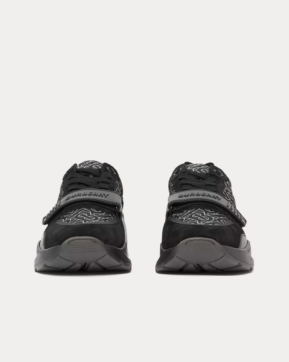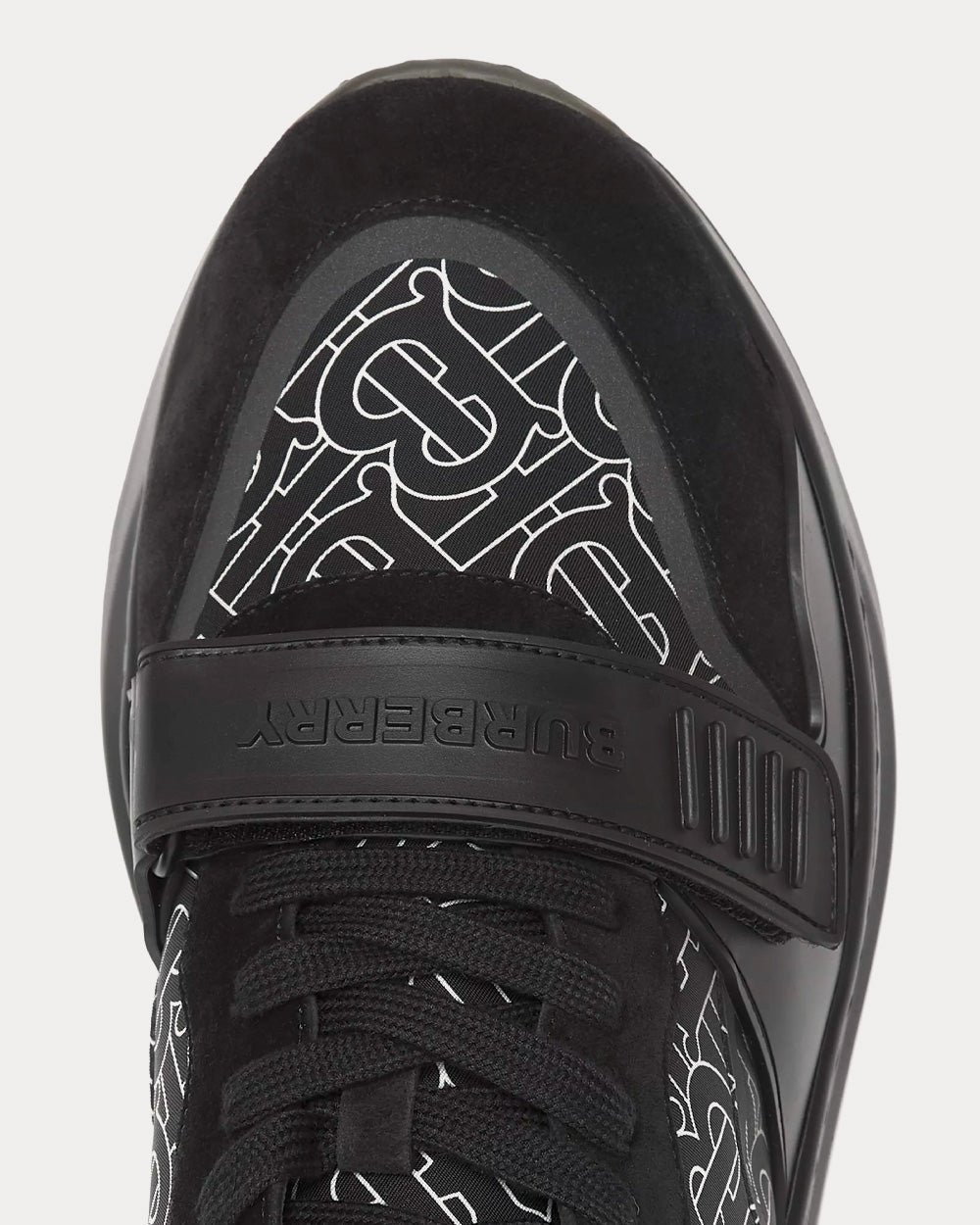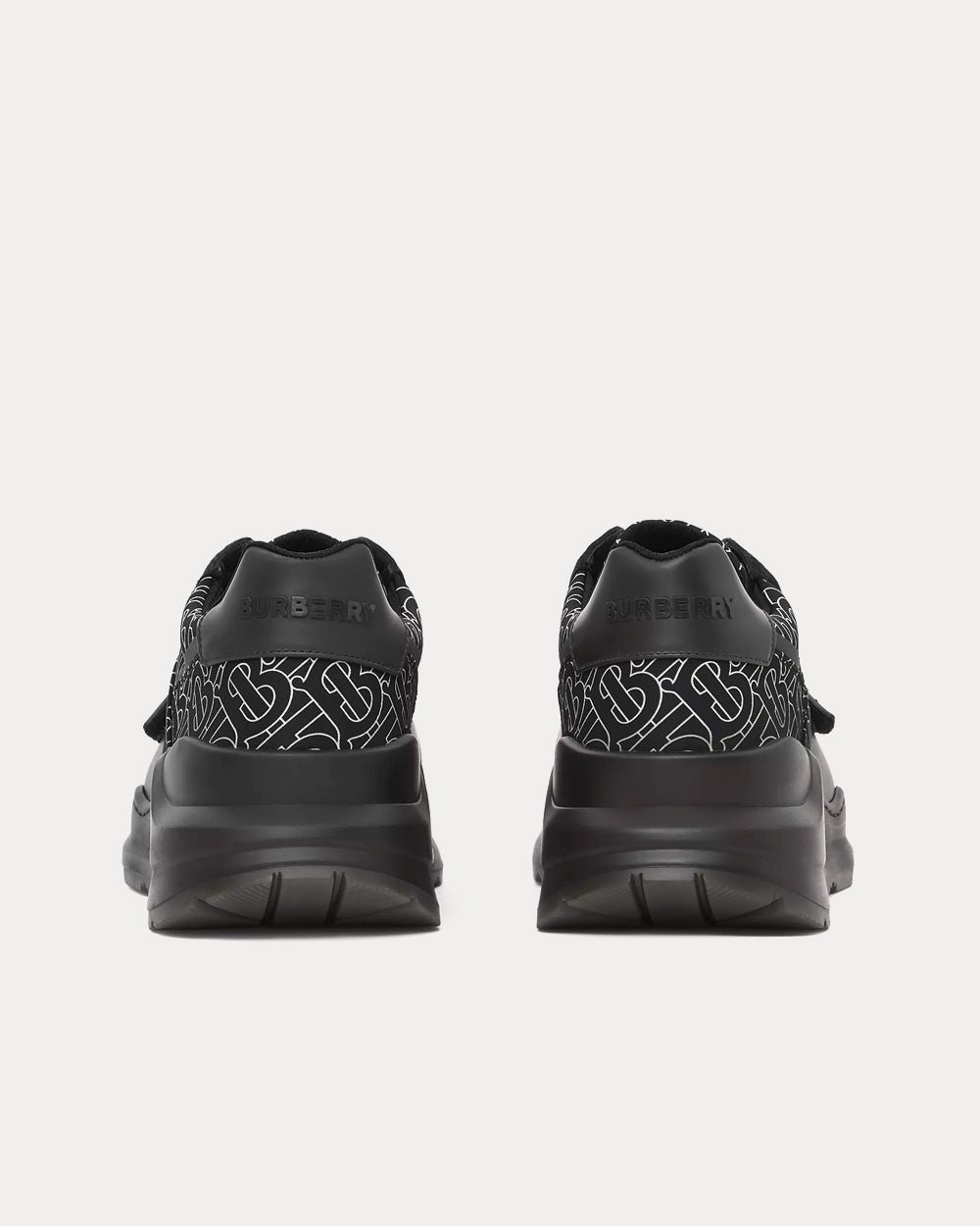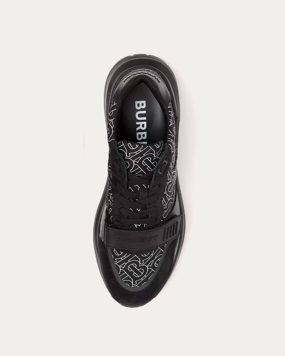 Baskets épaisses Burberry revisitées en ECONYL® à imprimé Monogram, un fil de nylon durable fabriqué à partir de filets de pêche régénérés, de chutes de tissu et de plastique industriel. Le modèle repose sur une semelle incurvée accentuée.