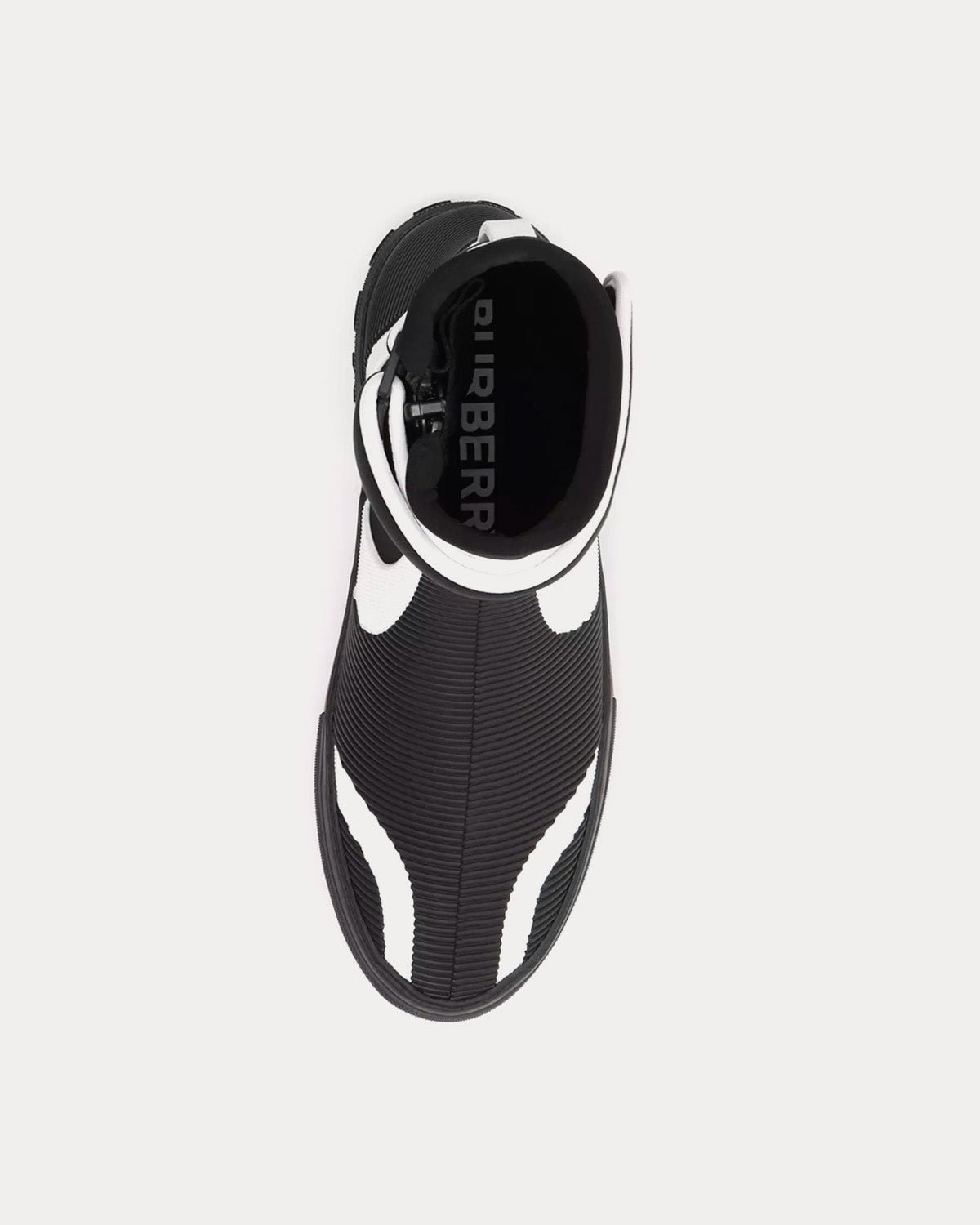 Baskets montantes Burberry en nylon extensible et caoutchouc noir/blanc
