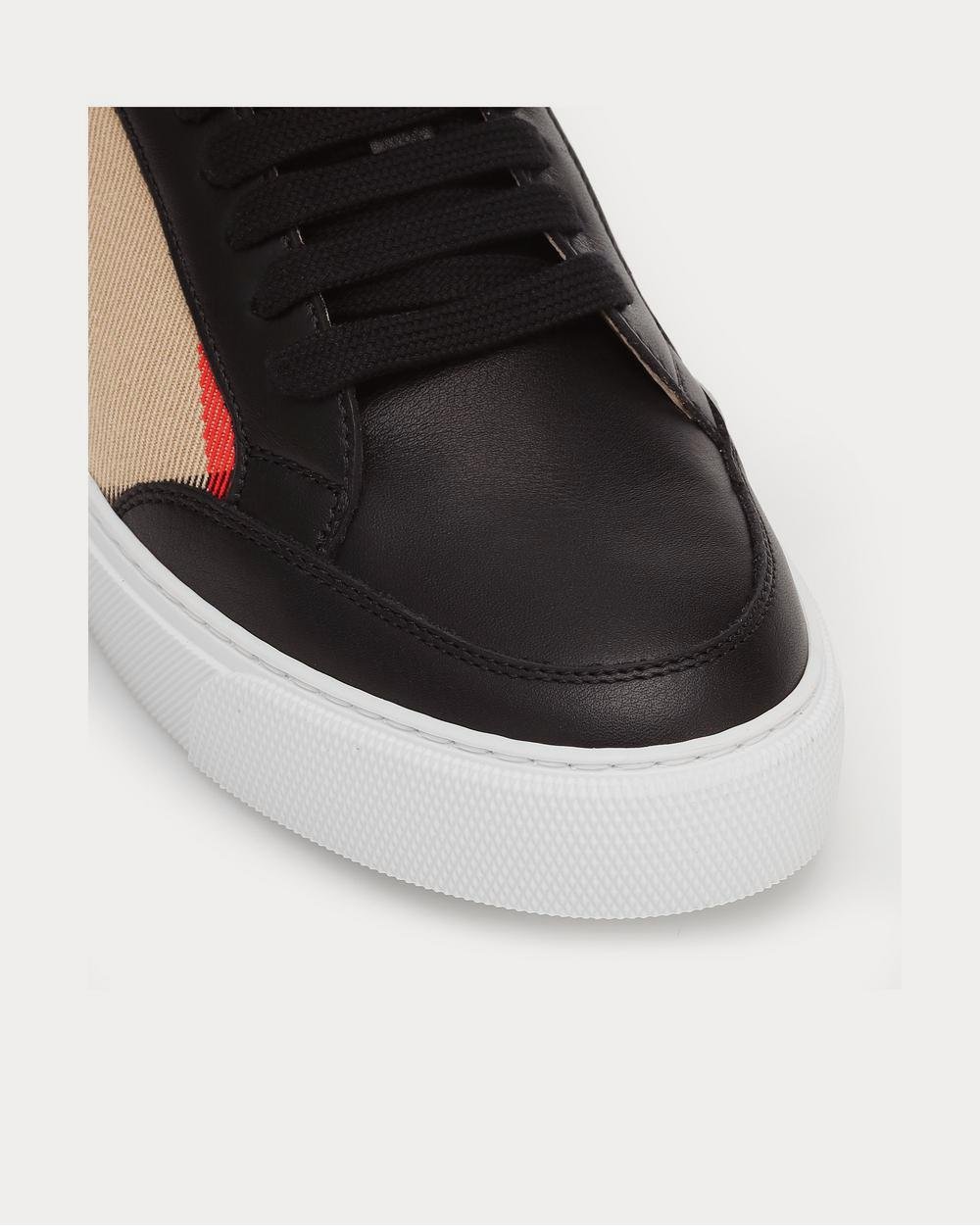 Investissez dans une icône avec les baskets Salmond de Burberry, ornées du motif « House check » immédiatement reconnaissable en coton tissé anglais. Confectionnées en Italie et bordées de cuir noir, ces baskets arborent le logo ton sur ton de la marque sur le contrefort et reposent sur d’élégantes semelles en caoutchouc blanc.