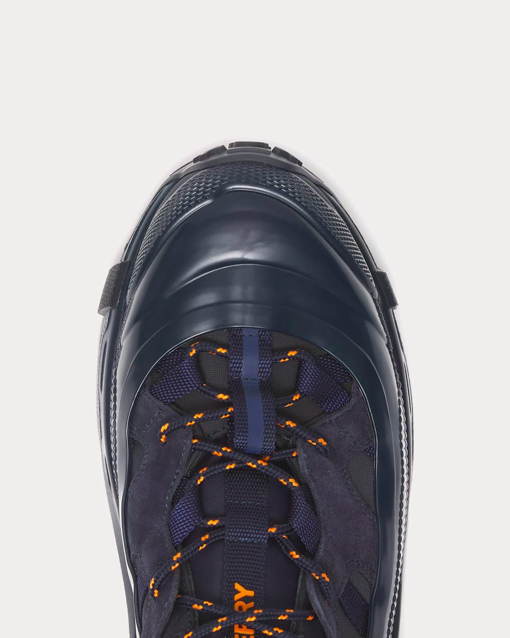 Découvrez notre nouvelle sneaker de défilé, confectionnée en nylon et daim, ornée de notre logo en lettres contrastées. Elle est ornée d’un surchaussure mat inspiré des bottes de pluie et d’une semelle à détails croisés faisant référence à notre motif à carreaux emblématique.