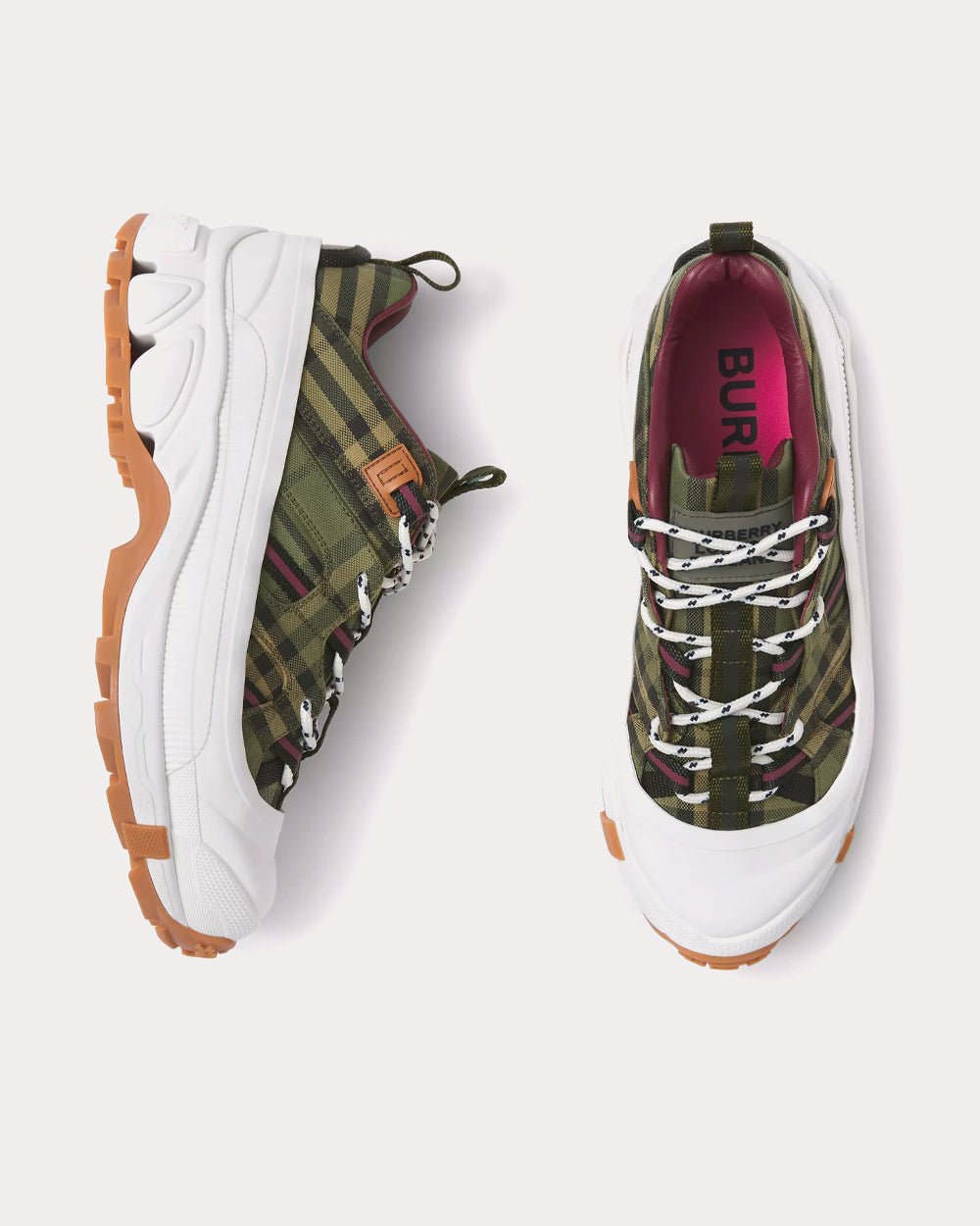 Baskets basses Burberry Arthur Check en coton vert militaire