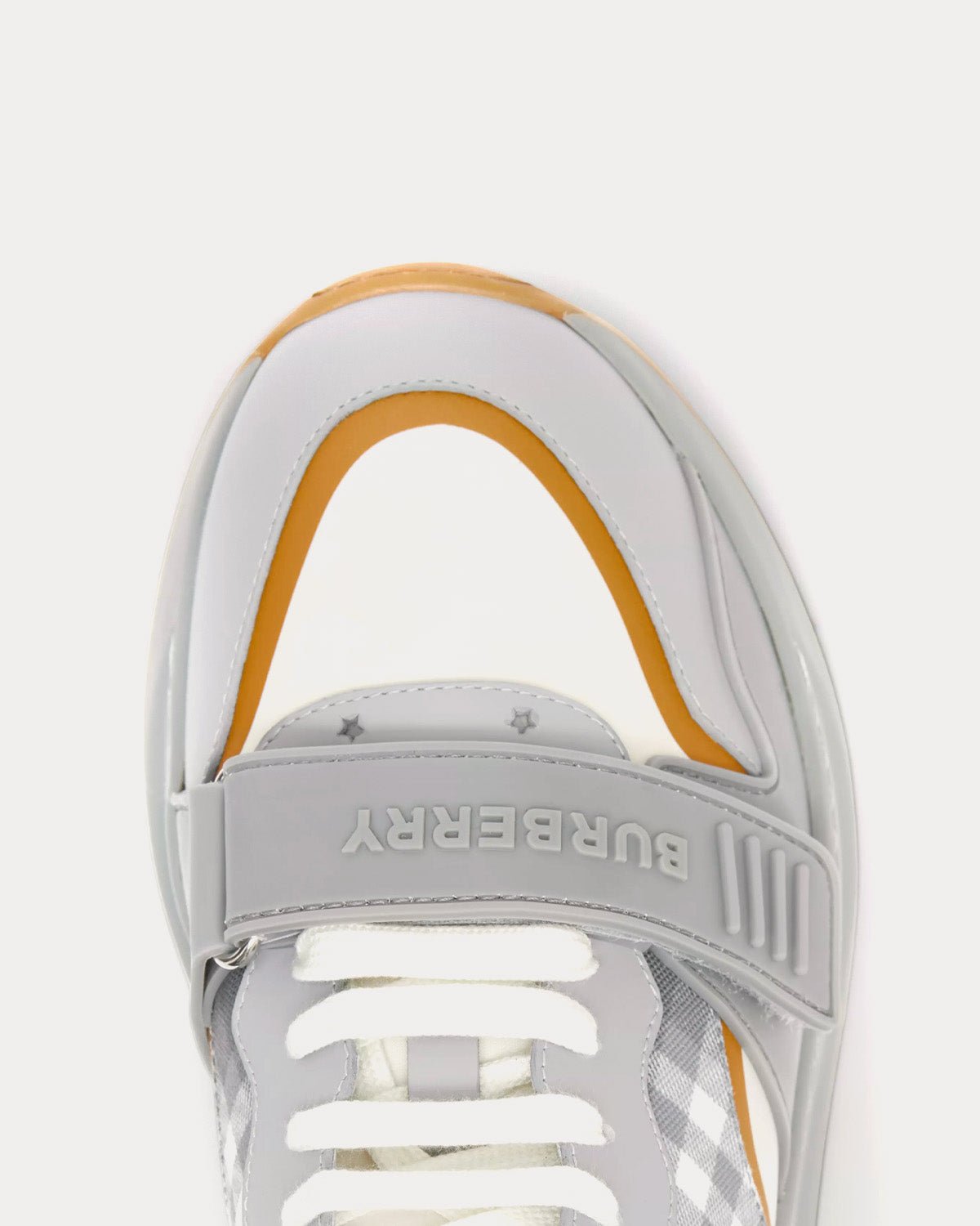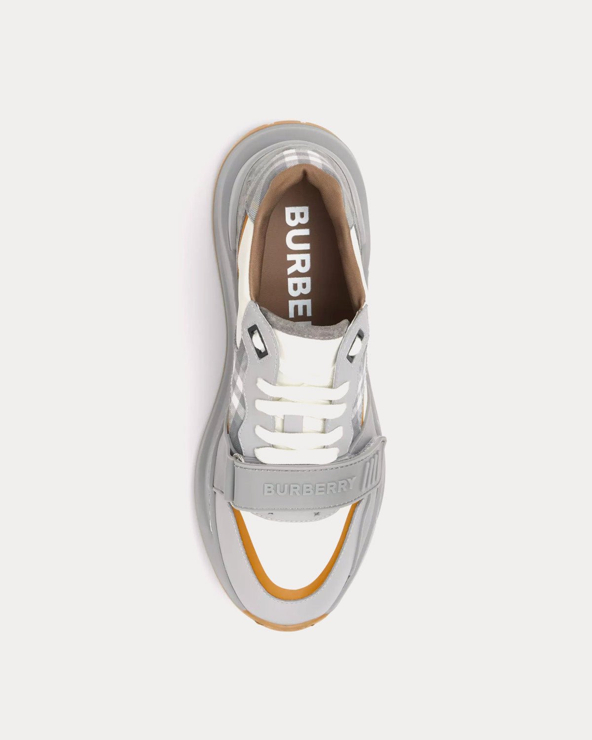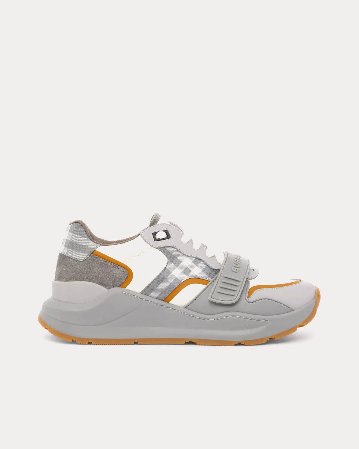 Baskets épaisses Burberry revisitées dans un contraste ton sur ton de carreaux Burberry, de daim et de cuir. Ce modèle est orné de notre logo et repose sur une semelle incurvée accentuée.