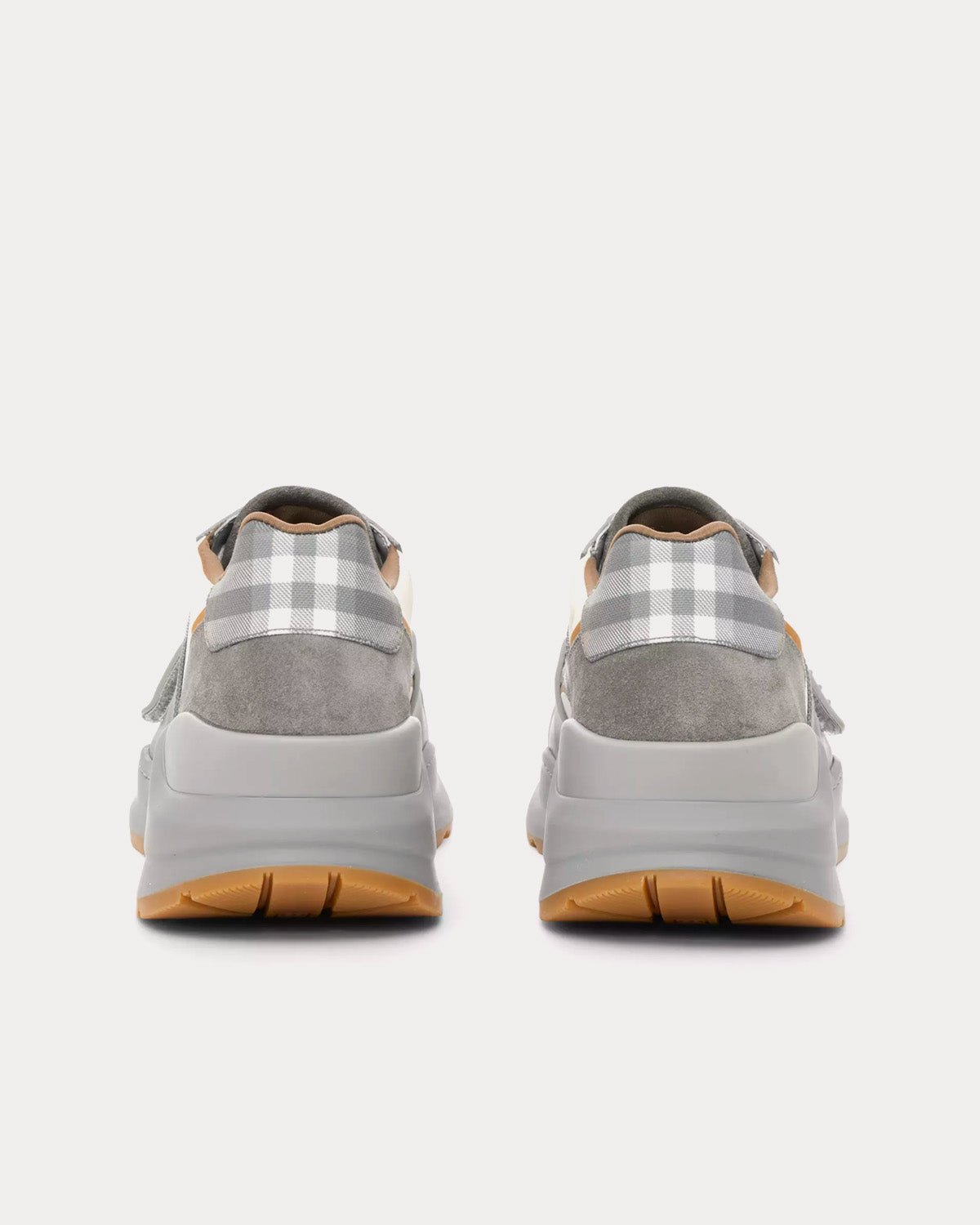 Baskets basses Burberry à carreaux, daim et cuir gris camel