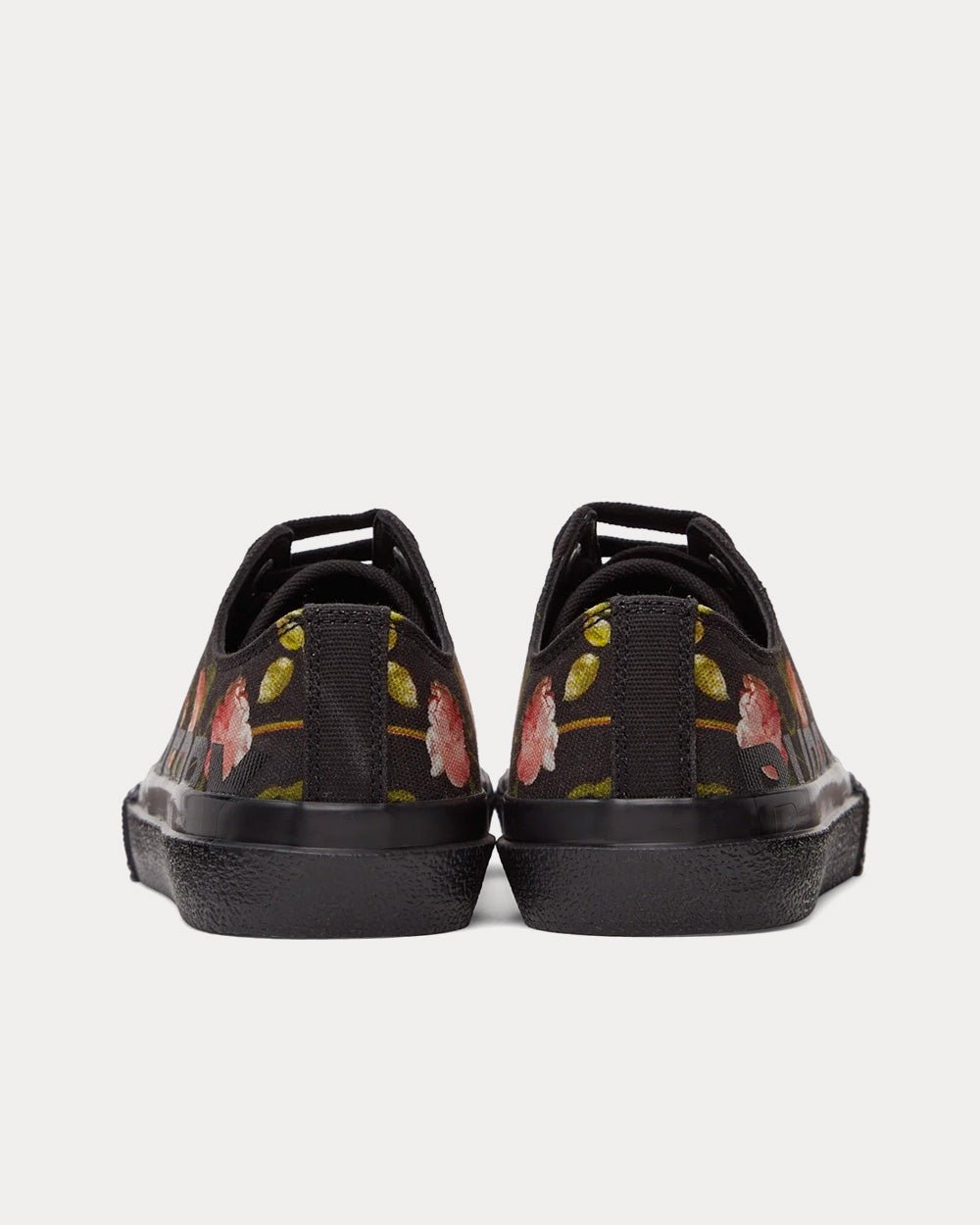 Baskets basses en toile noires avec logo imprimé en rose, vert et noir. Bout rond en caoutchouc. Fermeture à lacets ton sur ton. Semelle en caoutchouc texturé. Ferrures ton sur ton.
