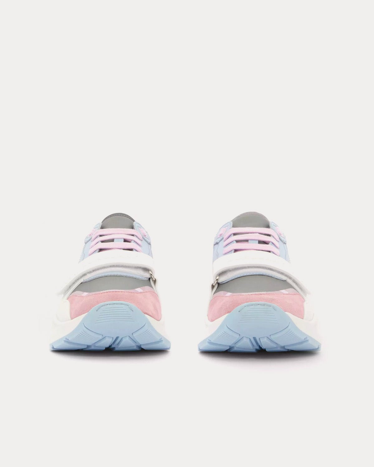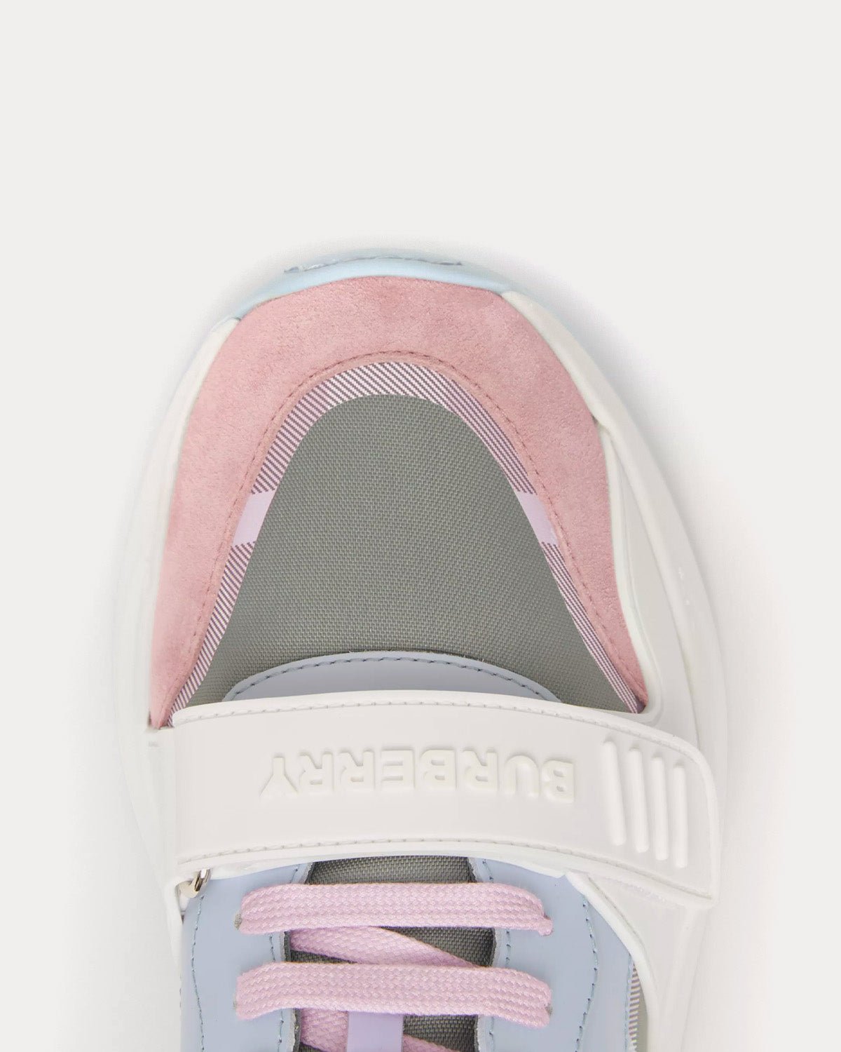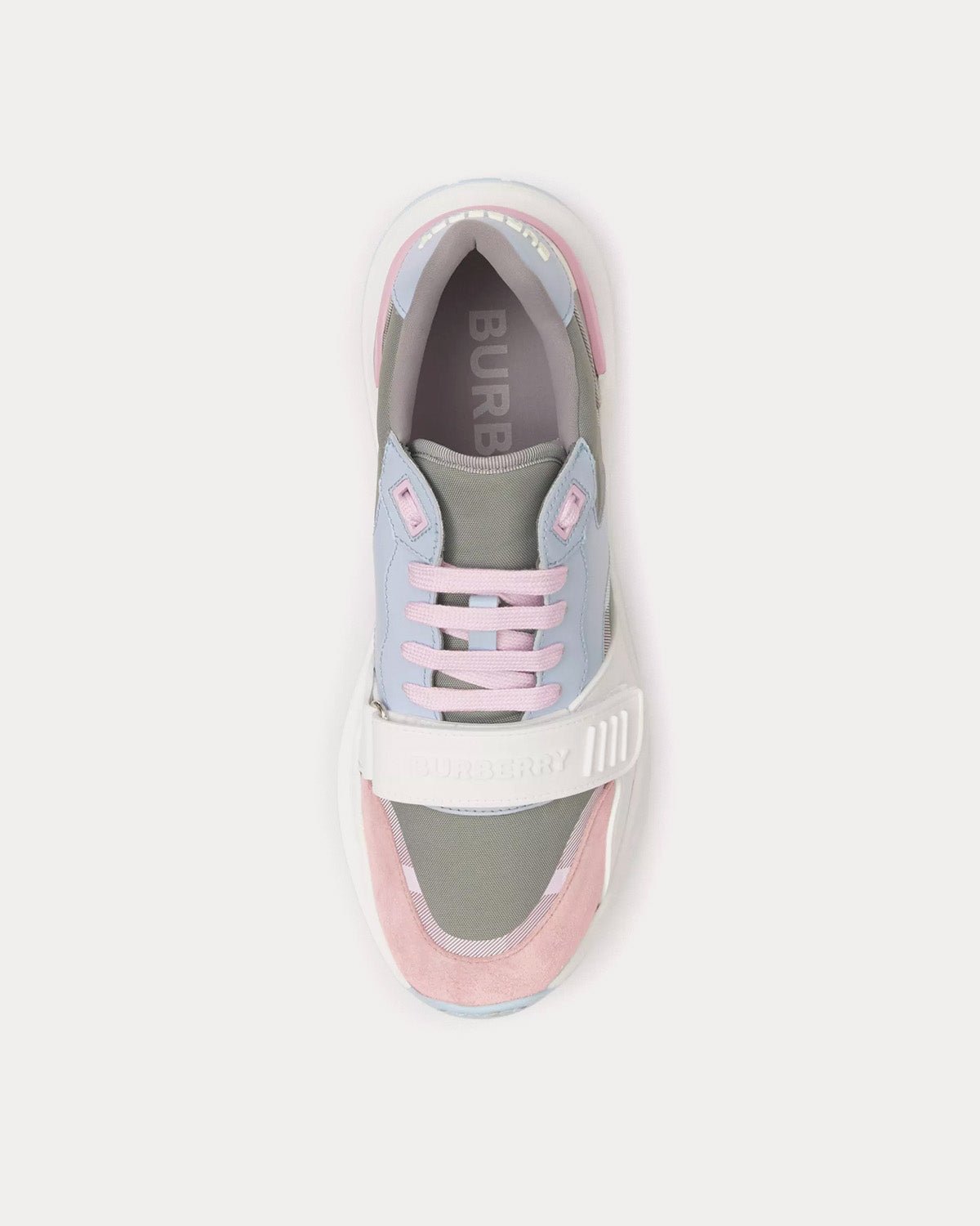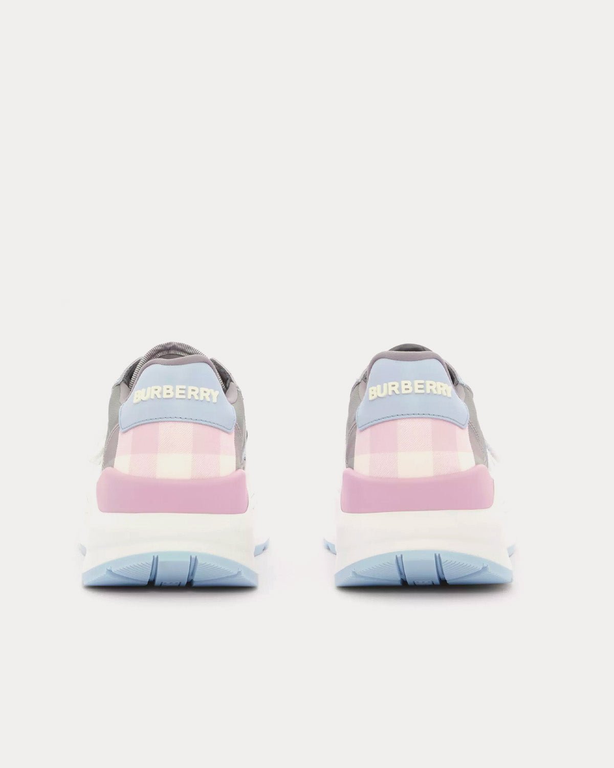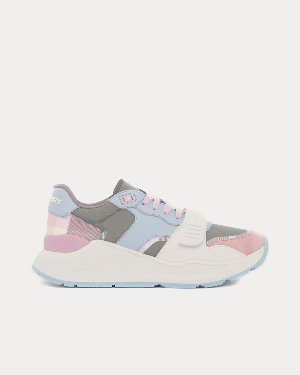 Baskets basses Burberry en cuir, daim et nylon à carreaux gris pâle