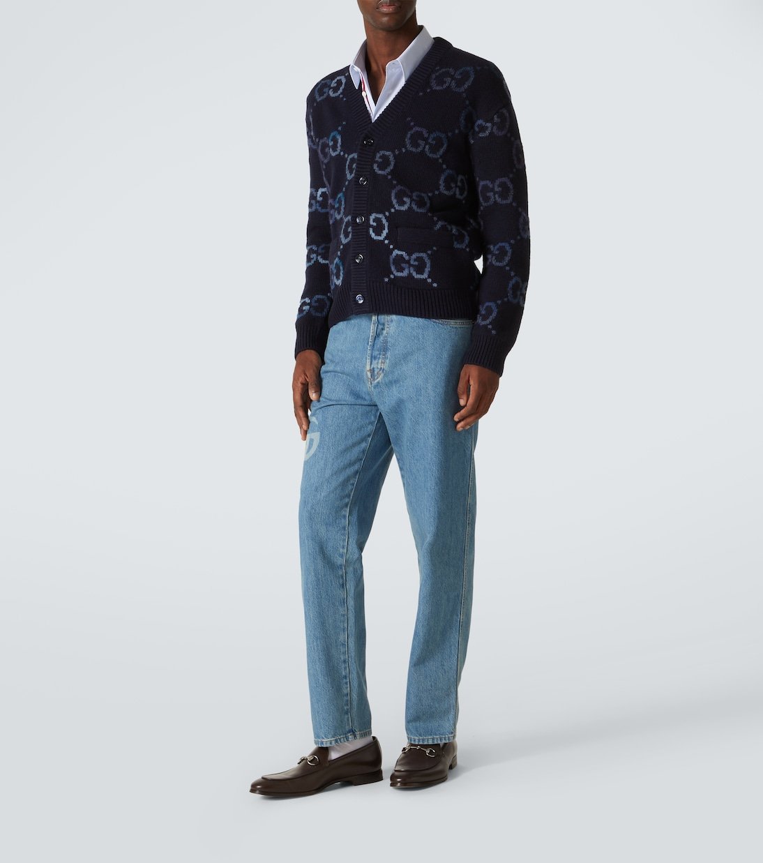 Cardigan GG intarsia en laine mélangéeCardigan GG intarsia en laine mélangée