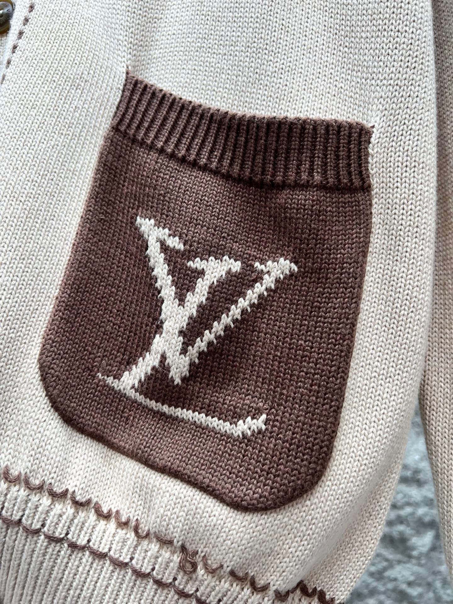 Découvrez l’élégance intemporelle du cardigan Louis Vuitton, un vêtement sophistiqué conçu pour allier confort et style. Parfait pour une tenue chic au quotidien ou une occasion spéciale, ce cardigan incarne le luxe à la française avec ses détails exquis.
