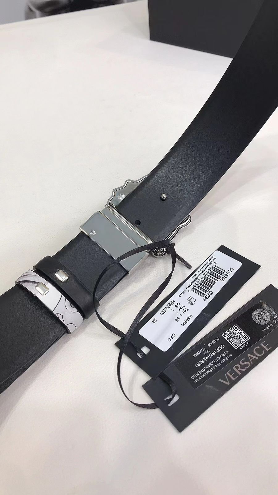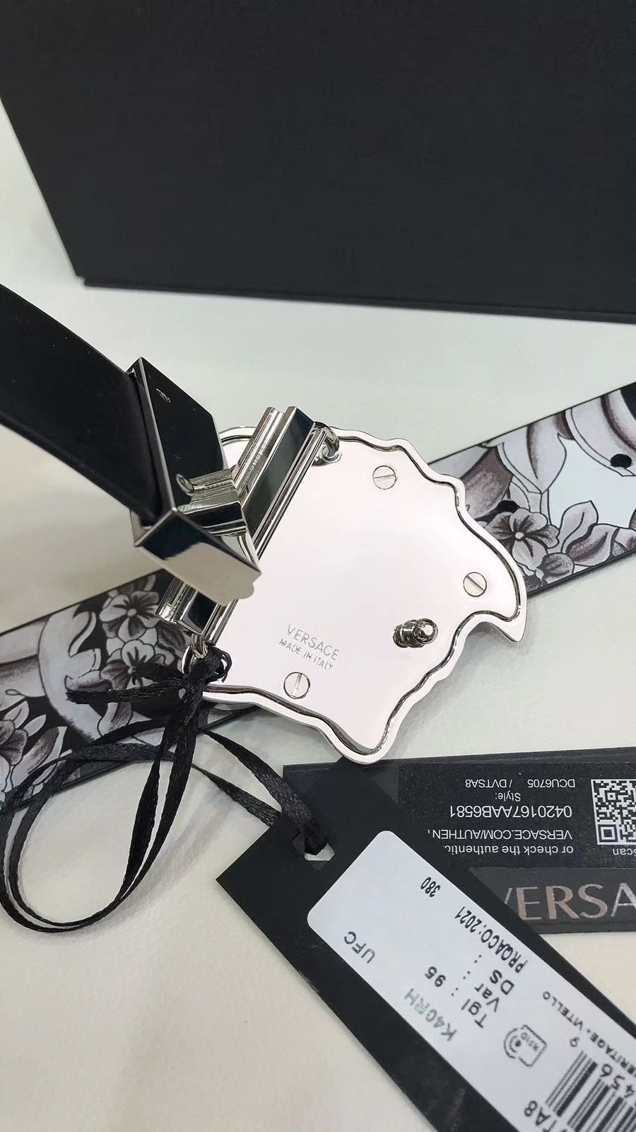 Fabriquée en cuir pur, la ceinture réversible Versace La Medusa Silver Baroque est livrée dans sa grande boîte et son emballage d’origine pour une touche luxueuse. Son marquage soigné et son souci du détail en font un incontournable pour les amateurs d’originalité. De plus, elle est livrée avec un sac de transport pratique. Sublimez votre style avec cette ceinture de qualité.