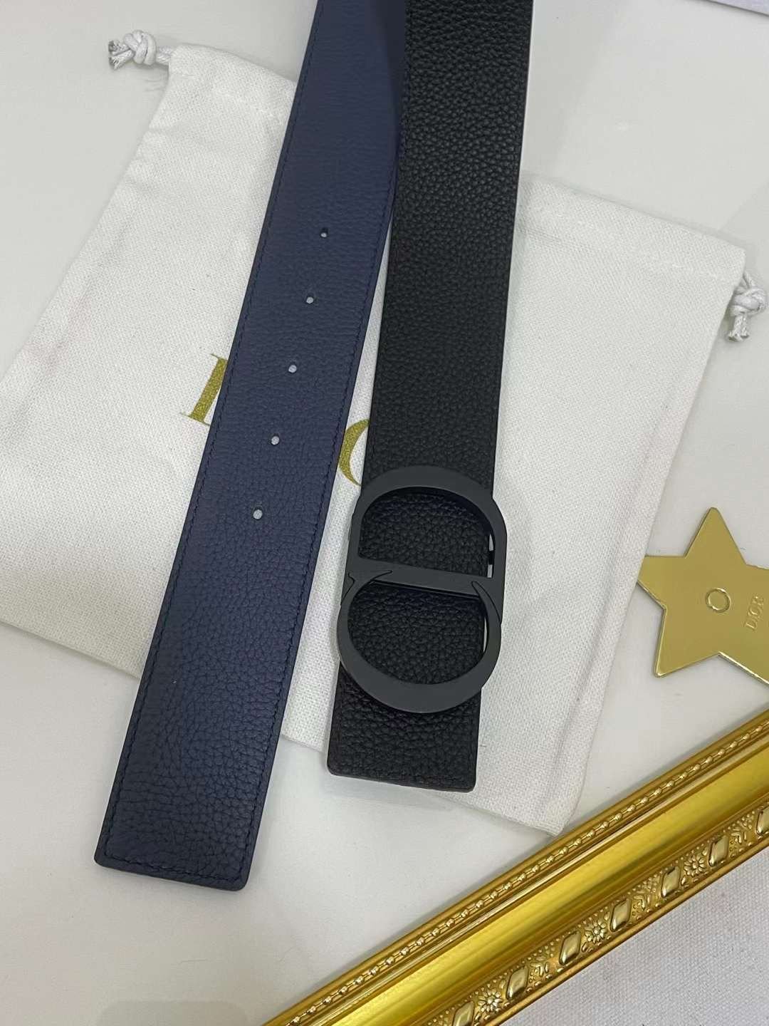 Ceinture réversible Christian Dior Homme en cuir de veau grainé GHW (Noir/Bleu Marine)