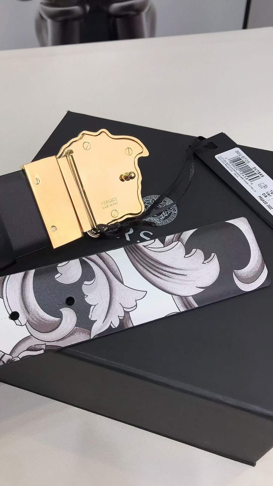 Cette ceinture réversible baroque LA MEDUSA est un accessoire exceptionnel pour toutes vos tenues. Confectionnée en cuir véritable et livrée dans sa grande boîte et son emballage d’origine, elle se distingue par ses détails et son logo. De plus, elle ravira tous les amateurs d’originalité grâce à son sac de transport inclus.