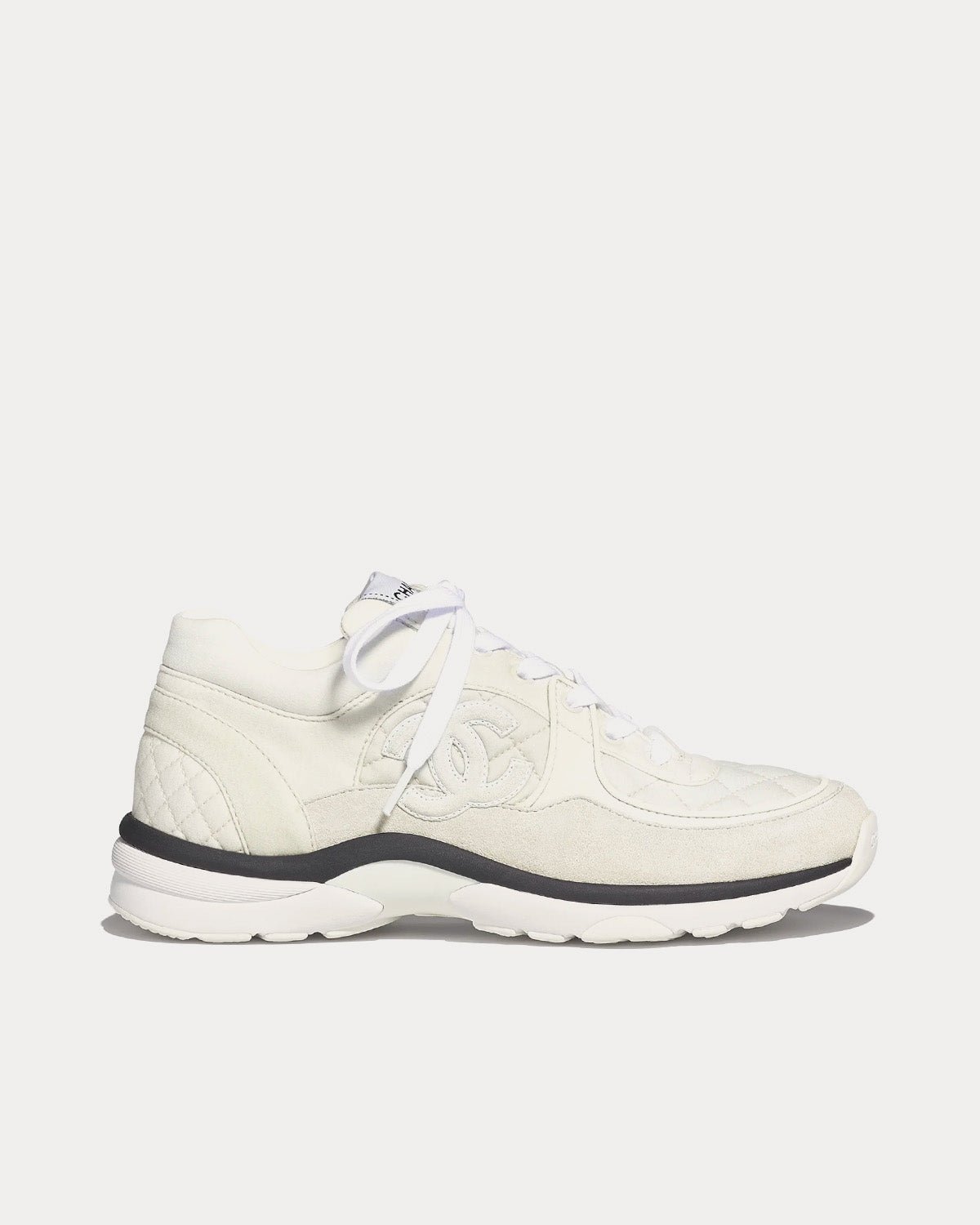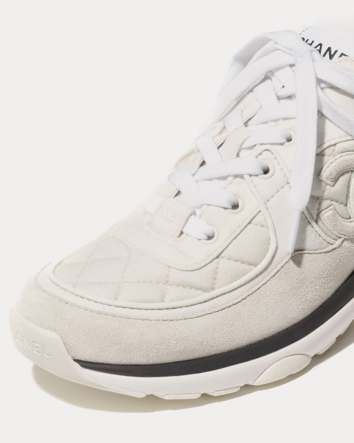 Baskets basses Chanel en tissu et cuir de veau suédé gris clair