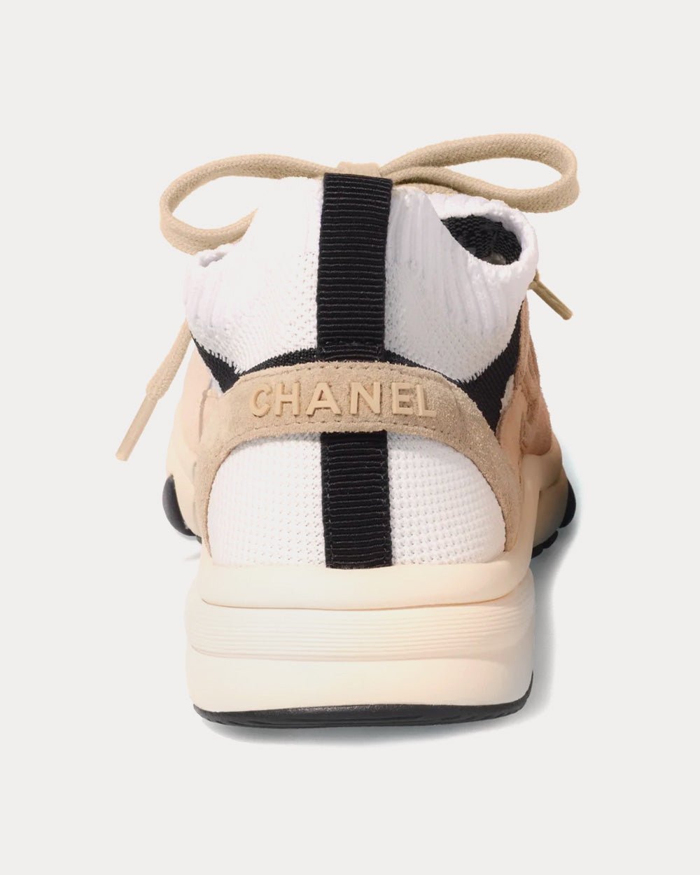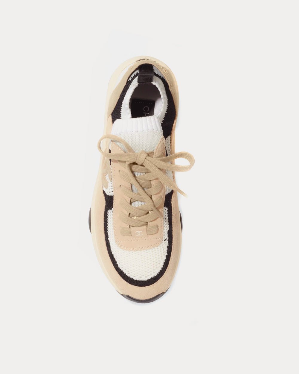 Baskets basses Chanel en maille et cuir de veau suédé rose clair/blanc/noir