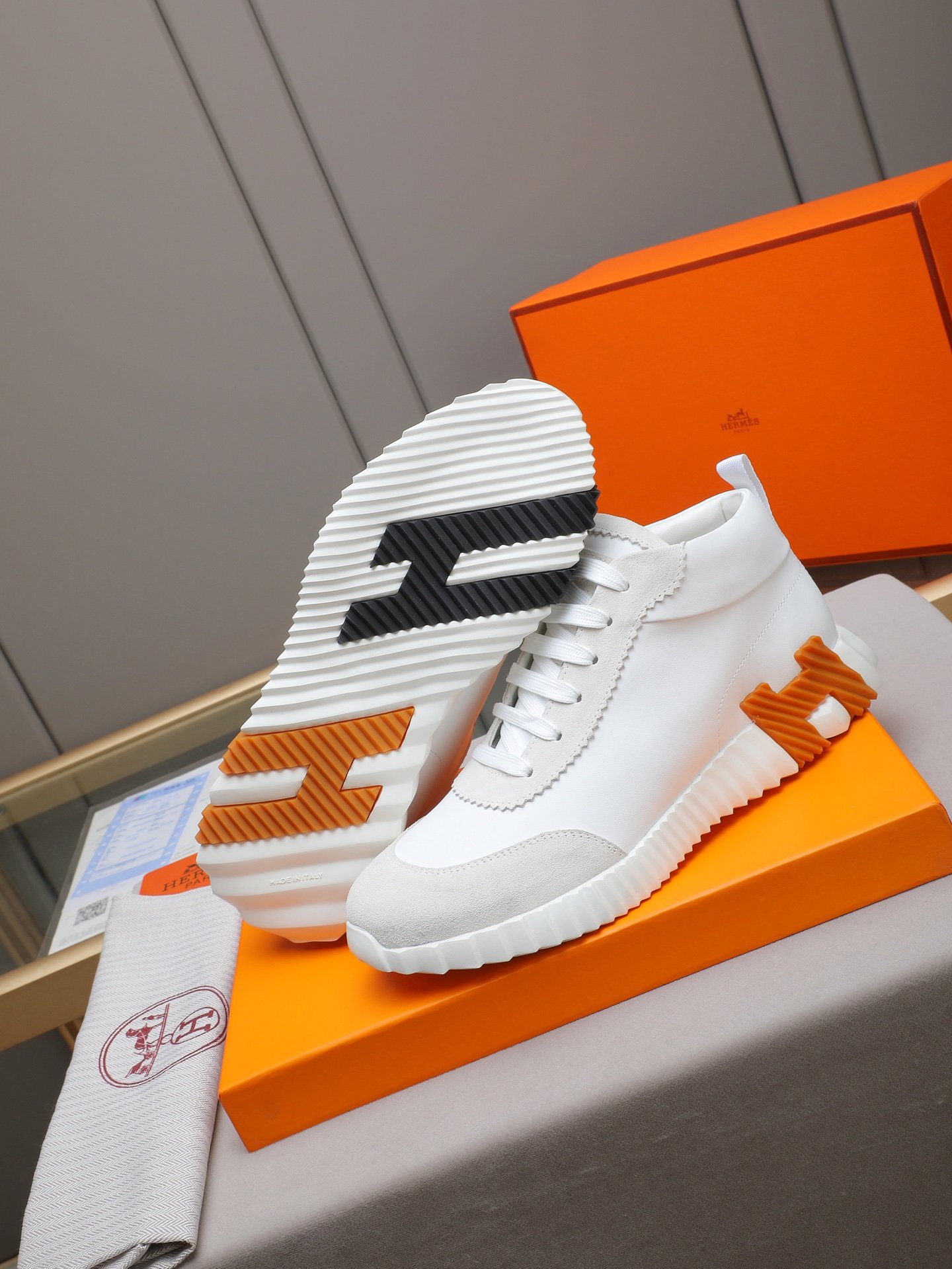 Découvrez la Chaussure Bouncing Hermès, alliant élégance et confort. Disponible en plusieurs couleurs sophistiquées (Blanc, Noir & Blanc, Bleu, Gris, Noir Full) et tailles (36 à 45), elle offre un ajustement parfait pour toutes les morphologies. Sa conception innovante assure un maintien optimal et une démarche dynamique, idéale pour un usage quotidien ou sophistiqué. Alliez style et performance avec cette chaussure d’exception, conçue pour répondre aux exigences des amateurs de mode et de confort.
