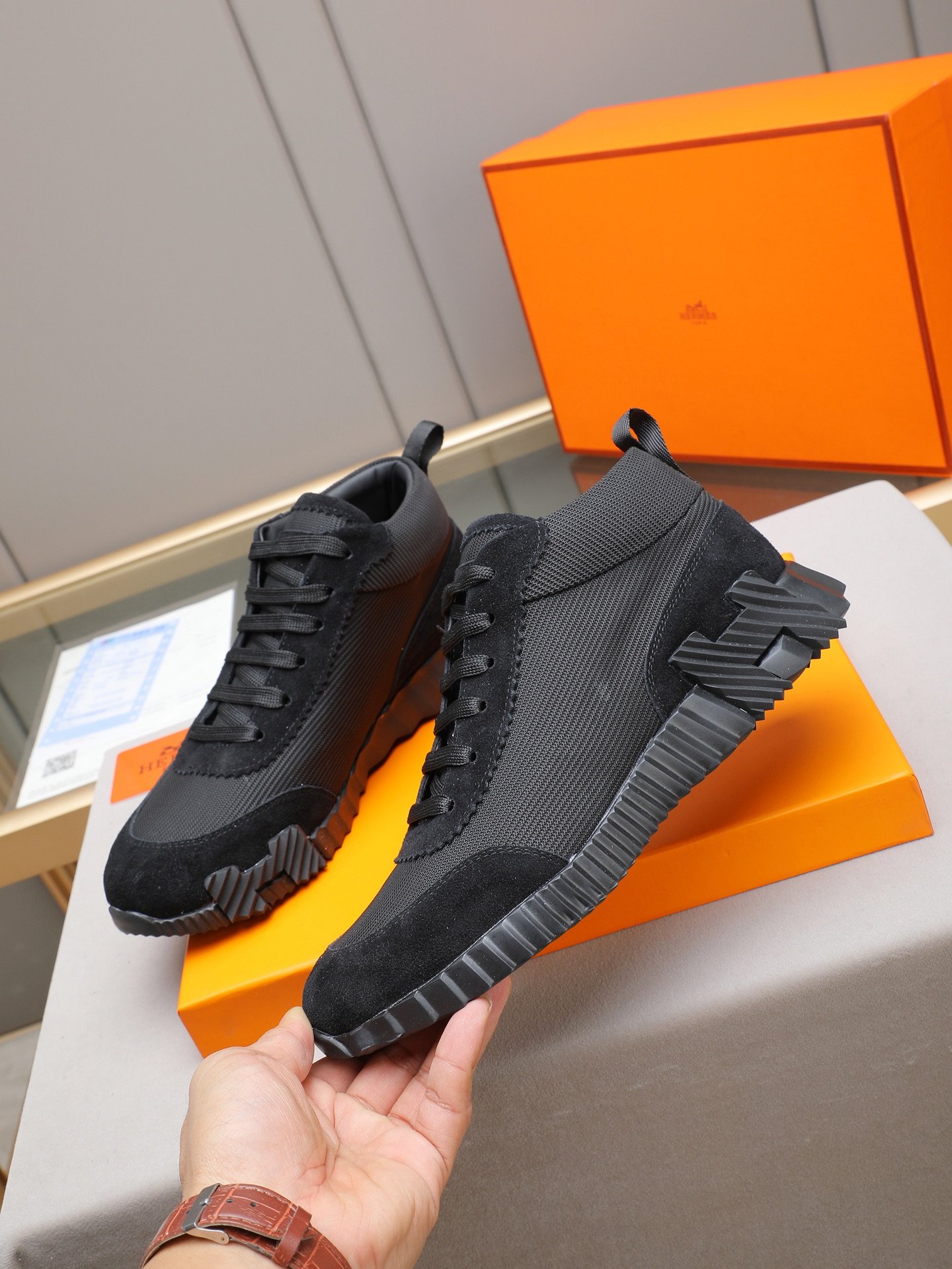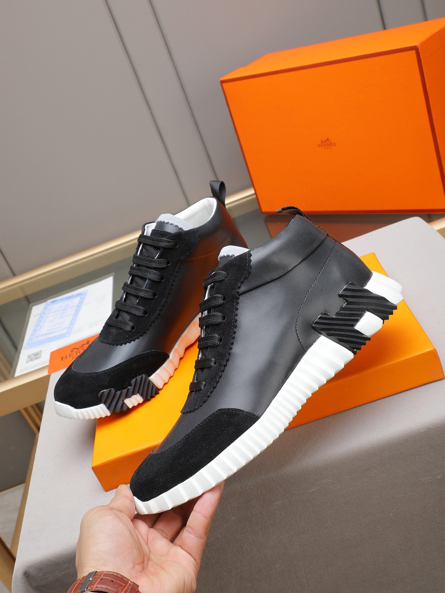 Les avantages : La Chaussure Bouncing Hermès vous offre un confort remarquable grâce à sa conception ergonomique, tout en soulignant votre style avec une esthétique raffinée. Parfaite pour un usage quotidien, elle garantit un maintien optimal et une légèreté exceptionnelle, vous permettant de rester élégant sans compromis sur le confort.