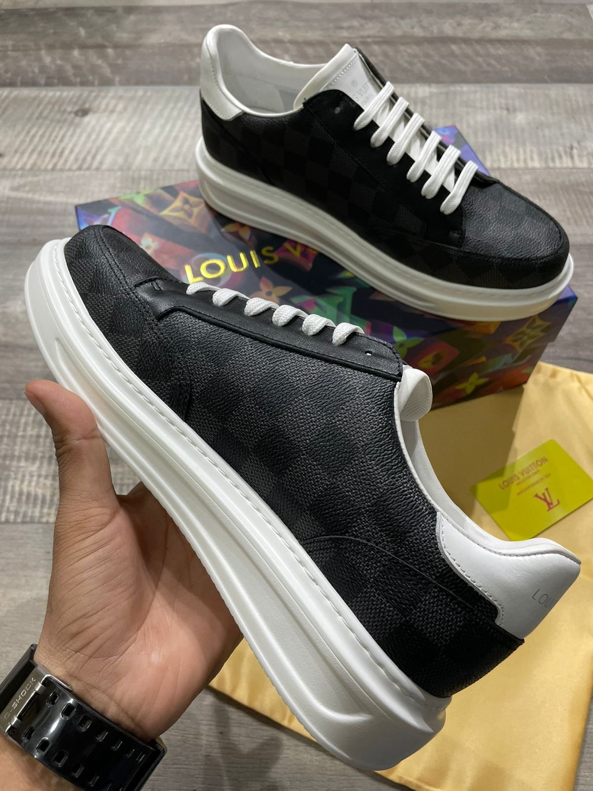 Découvrez le savoir-faire et la qualité des CHAUSSURES NOIRES PREMIUM CUBE DESIGN. Conçues avec des baskets de haute qualité, ces chaussures offrent une durabilité supérieure et sont livrées avec une boîte d’origine, un sac de transport, une housse de protection et une carte de visite. Article n° 2023 en magasin.