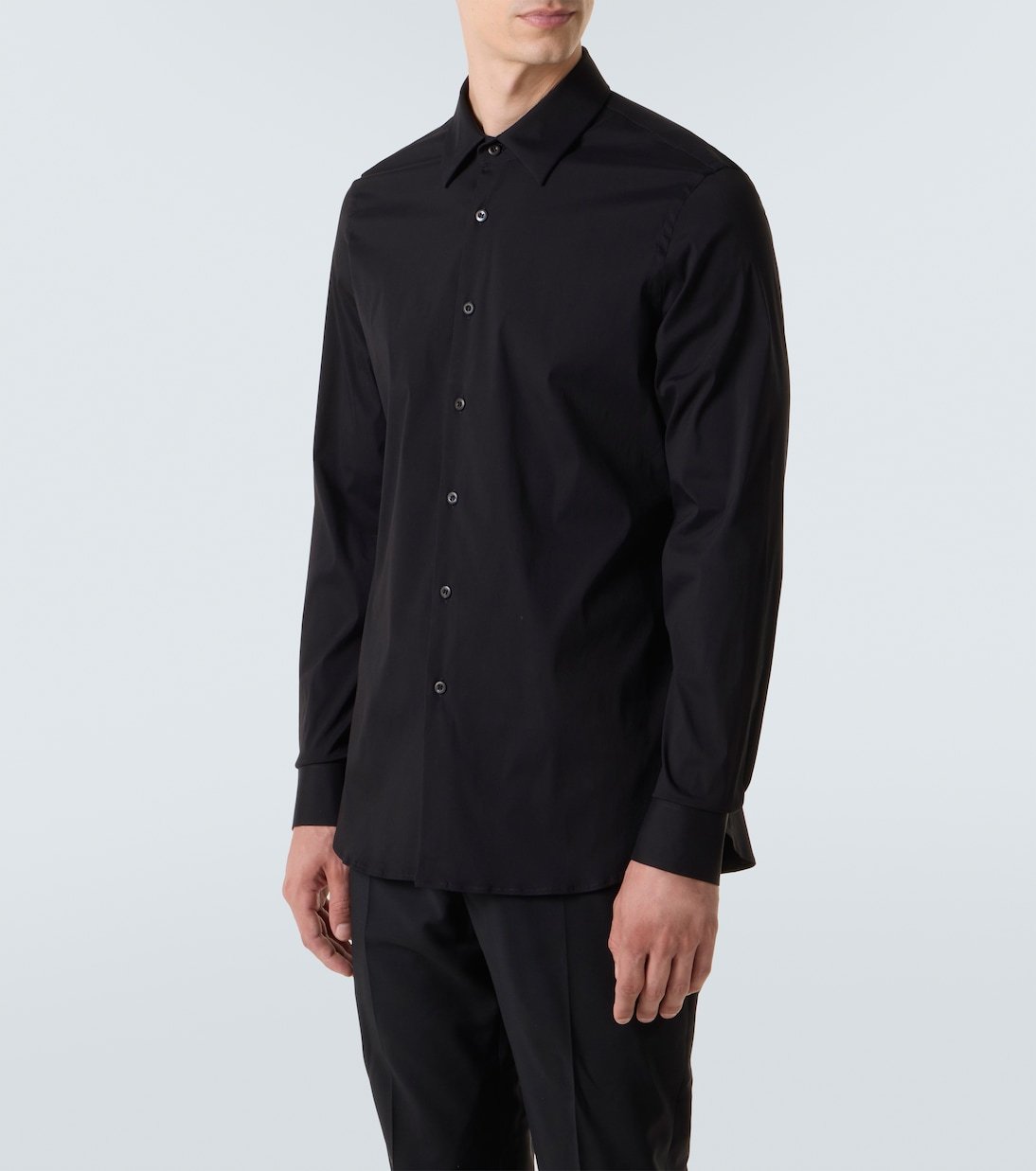 Prada revisite l’héritage italien dans une direction résolument moderne avec une approche épurée et avant-gardiste. Cette chemise de costume classique est réalisée en coton mélangé aéré avec une touche extensible pour plus de confort.