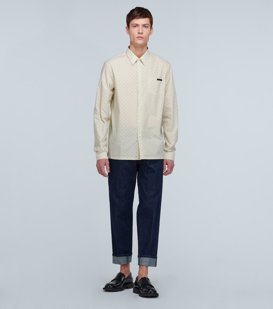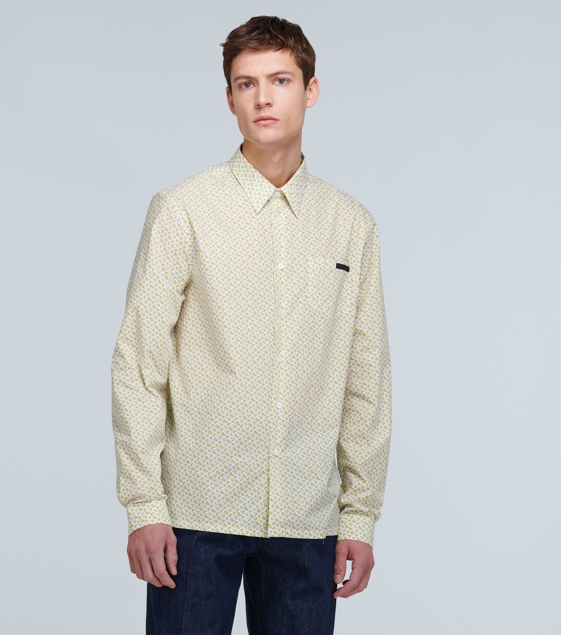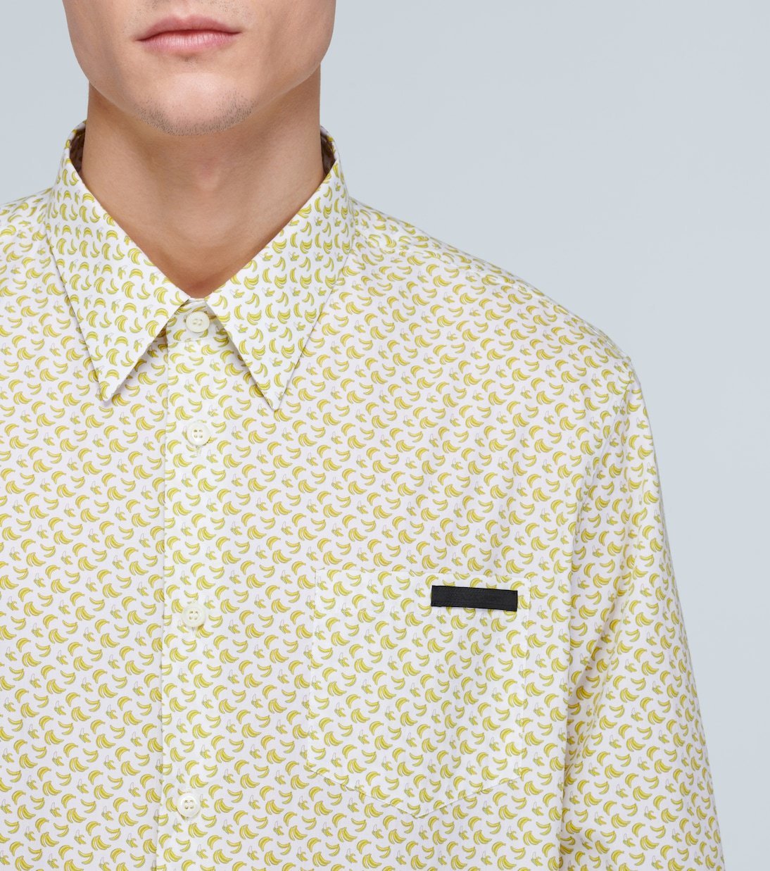 Confectionnée en Italie à base de popeline de coton, cette chemise slim Giallo de Prada est recouverte d’un imprimé banane saisissant. Ce modèle boutonné sur le devant arbore le motif Prada en écusson sur la poche plaquée.