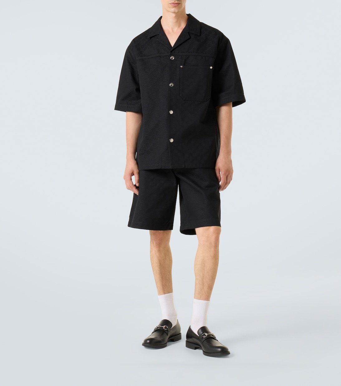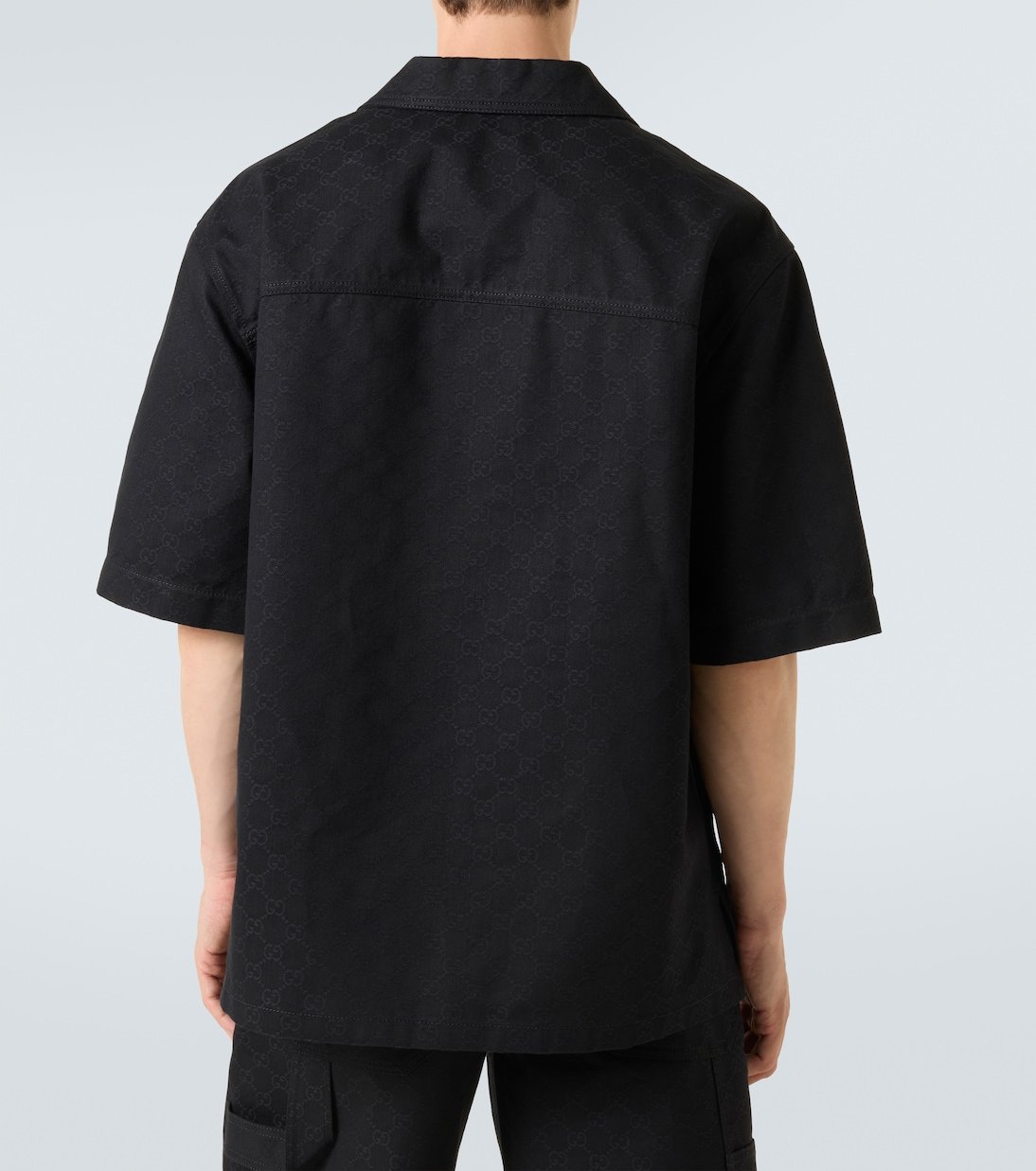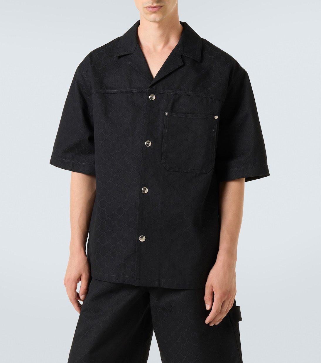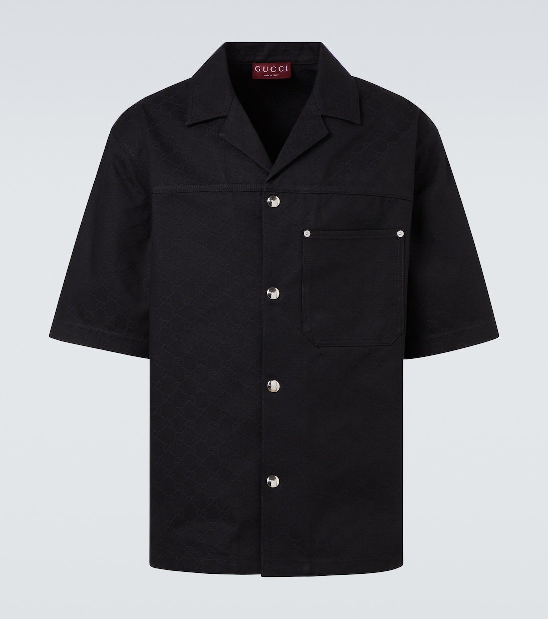 Le jacquard GG est une étoffe typiquement Gucci qui fait partie des codes de la maison depuis le début des années 70. Cette chemise en coton est dotée de manches courtes et d’une fermeture à boutons-pression sur le devant gravé du logo du label.