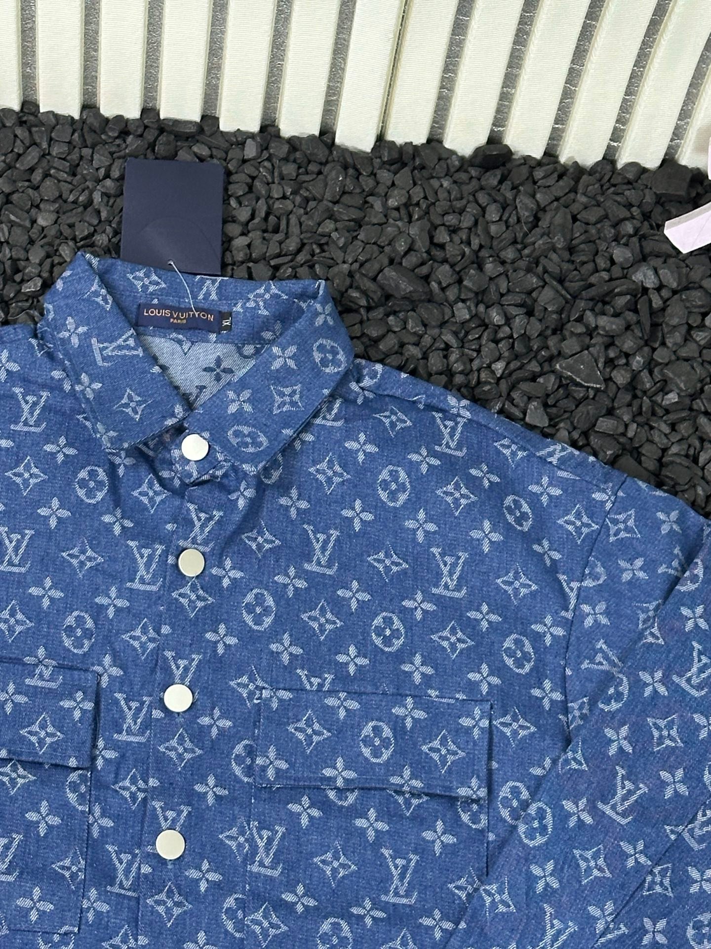 Cette chemise Louis Vuitton en denim bleu est une pièce emblématique mêlant élégance parisienne et inspiration urbaine.