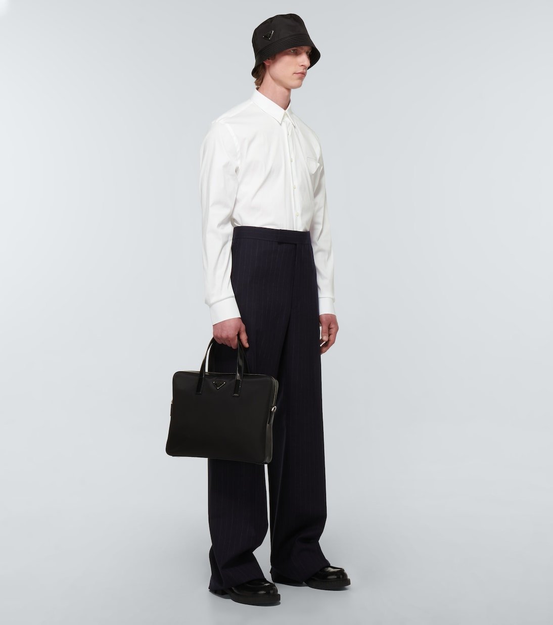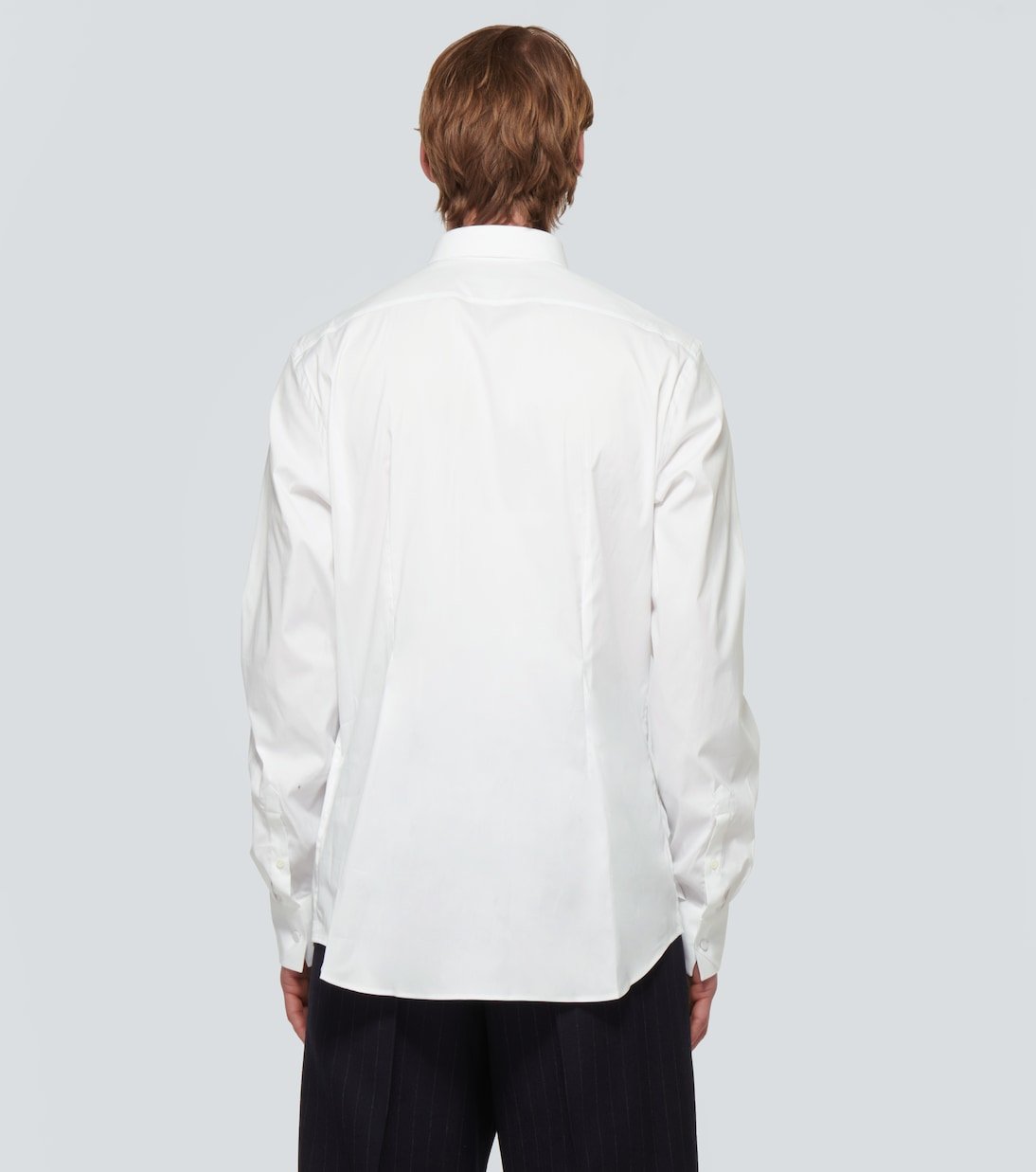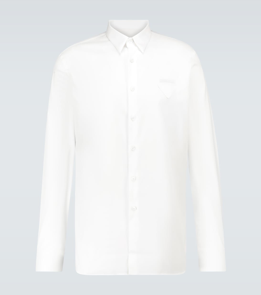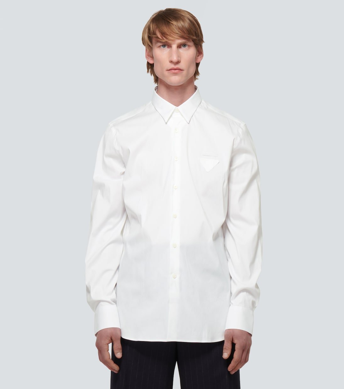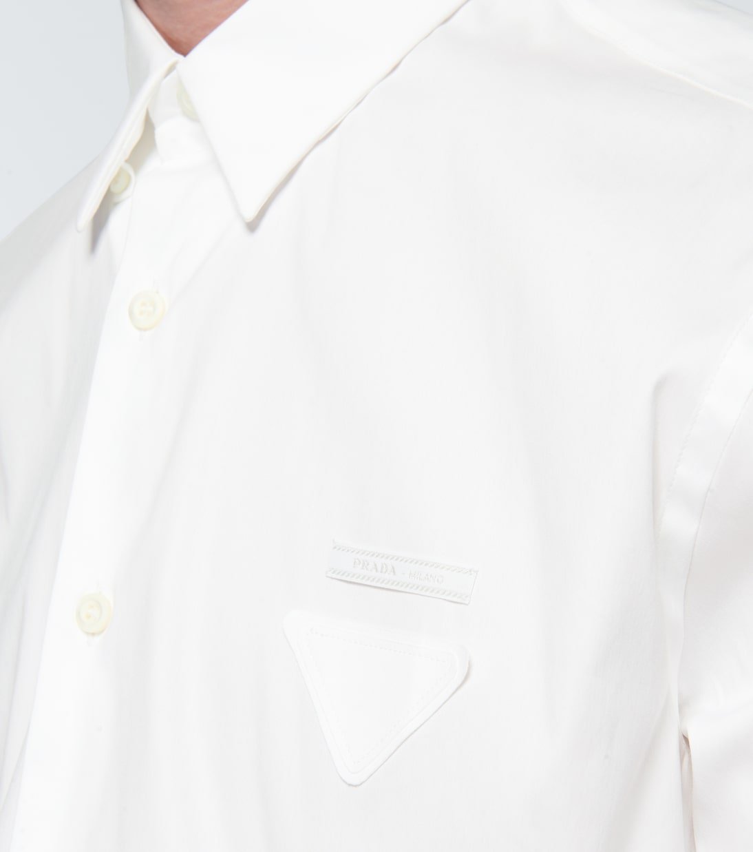 Ornée du logo en forme de triangle signature de la marque, cette chemise blanche de coupe slim signée Prada est réalisé en coton stretch. Ce modèle boutonné sur le devant est doté d’un col pointu.