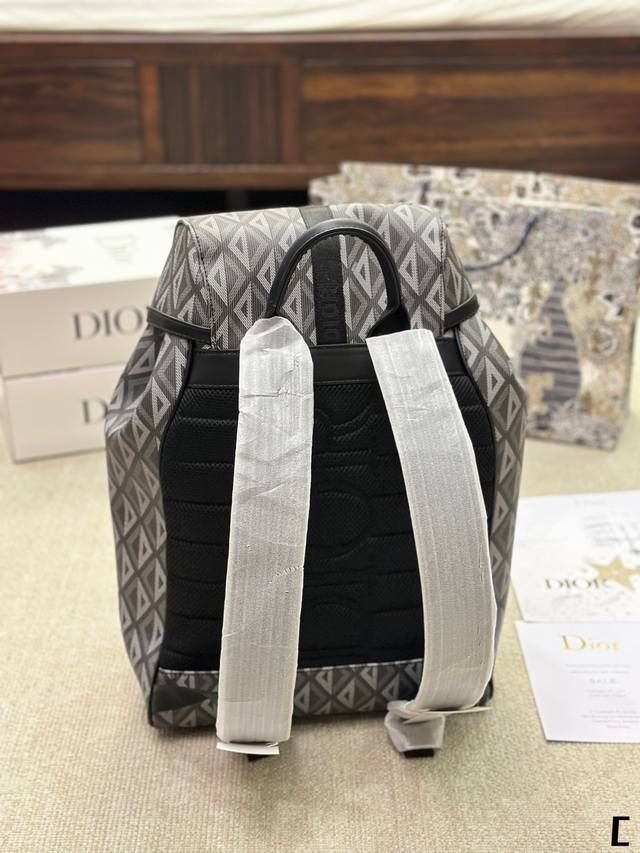 CHRISTIAN DIOR || Petit sac à dos Dior Hit The Road en toile et cuir de veau lisse Gris CD Diamond