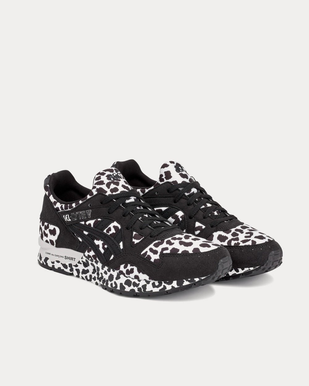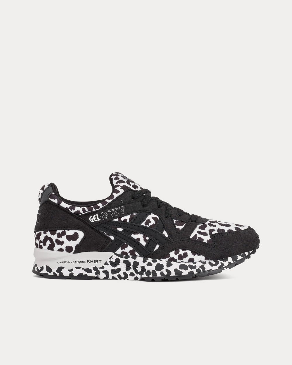 CDG Shirt has collaborated with Asics to re-work the GEL-LYTE V. Featuring a leopard print mesh upper, suede overlays and branded outsole.